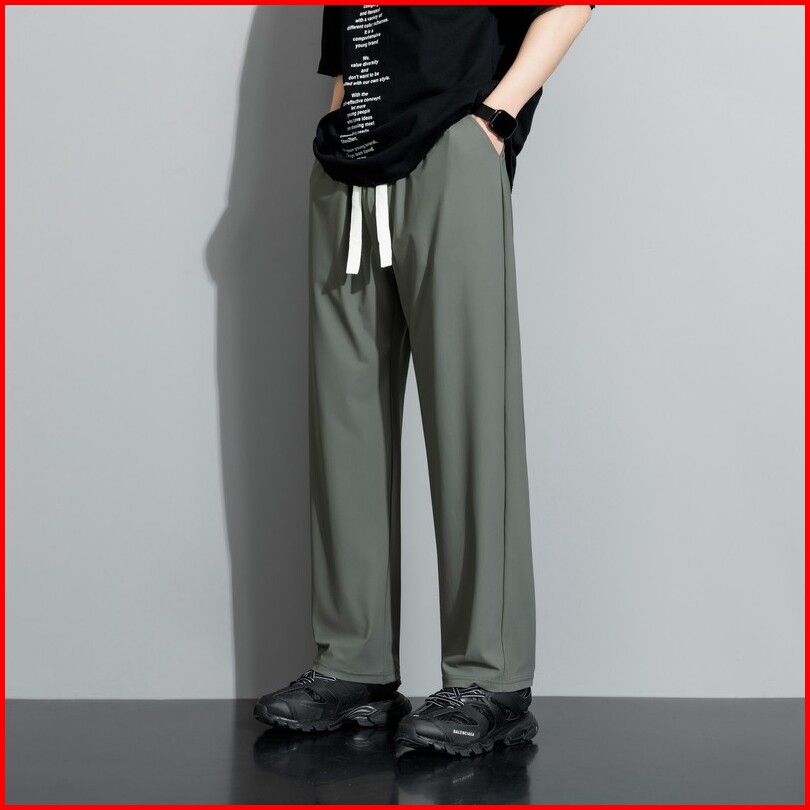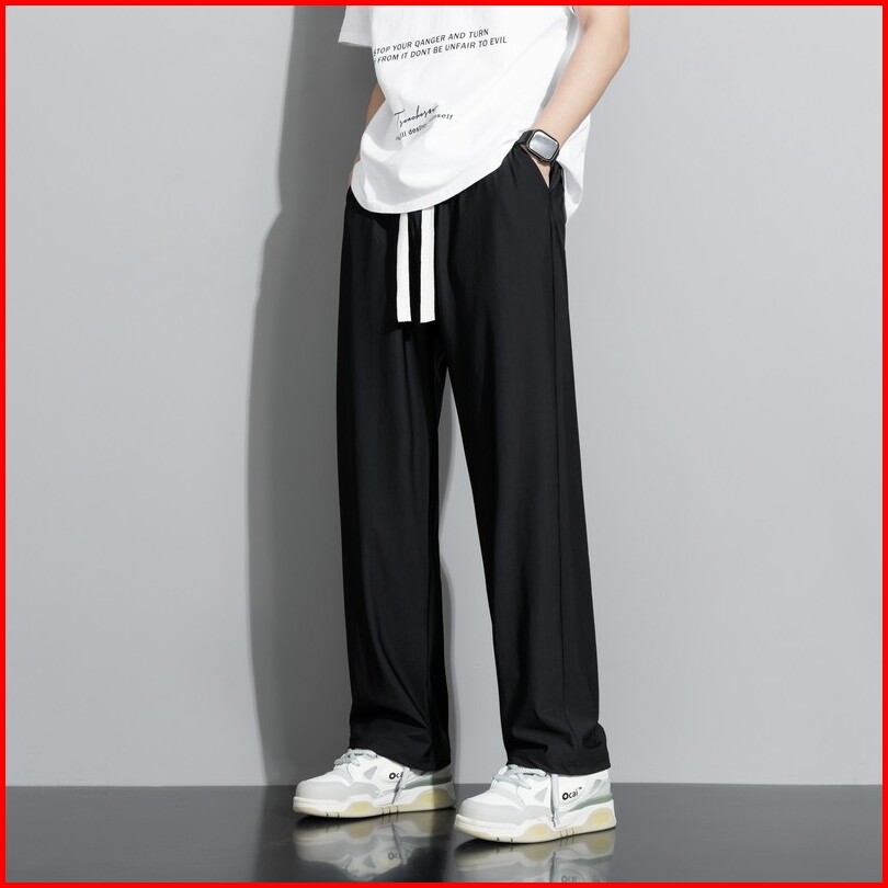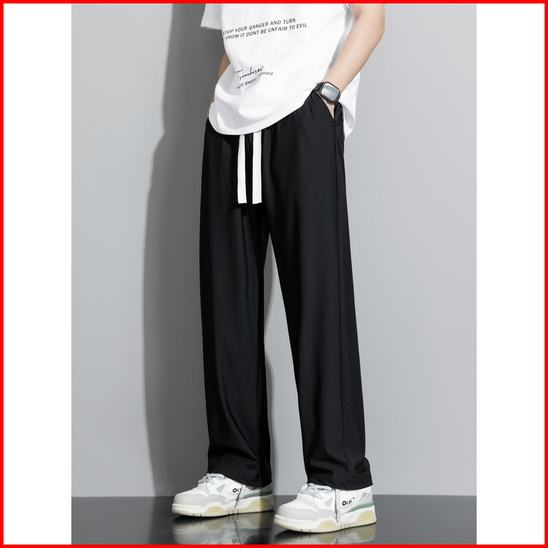 Disai - Celana Pria Panjang Celana Baggy Cowok Gombrong Versi Unisex Ice Silk Elastisitas Pants F39