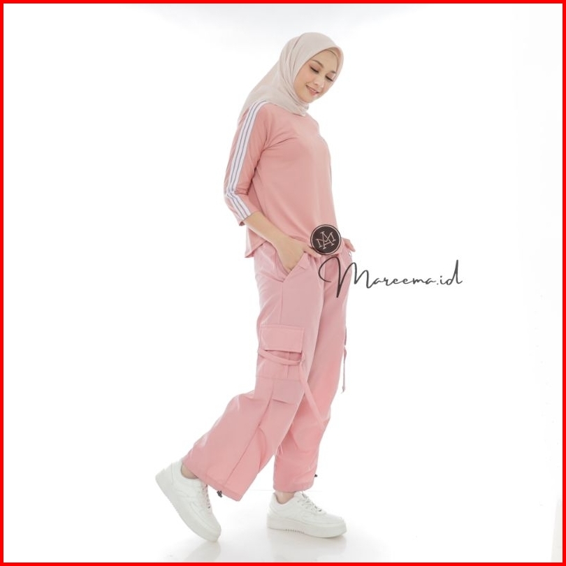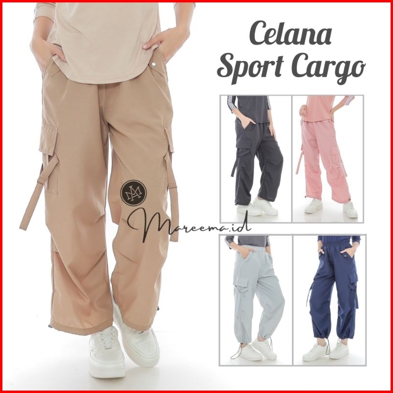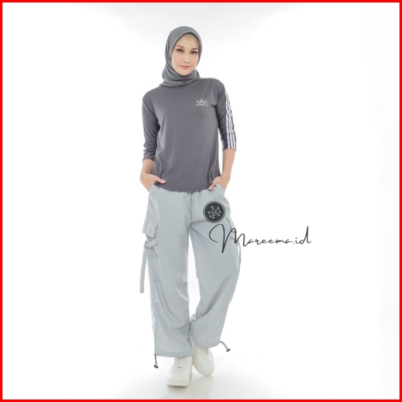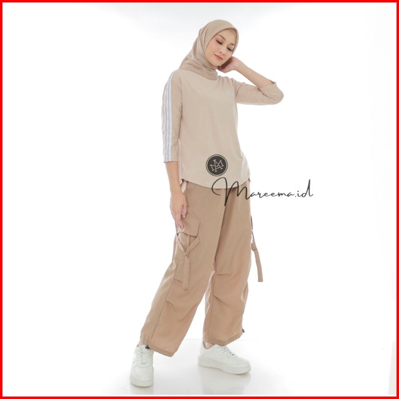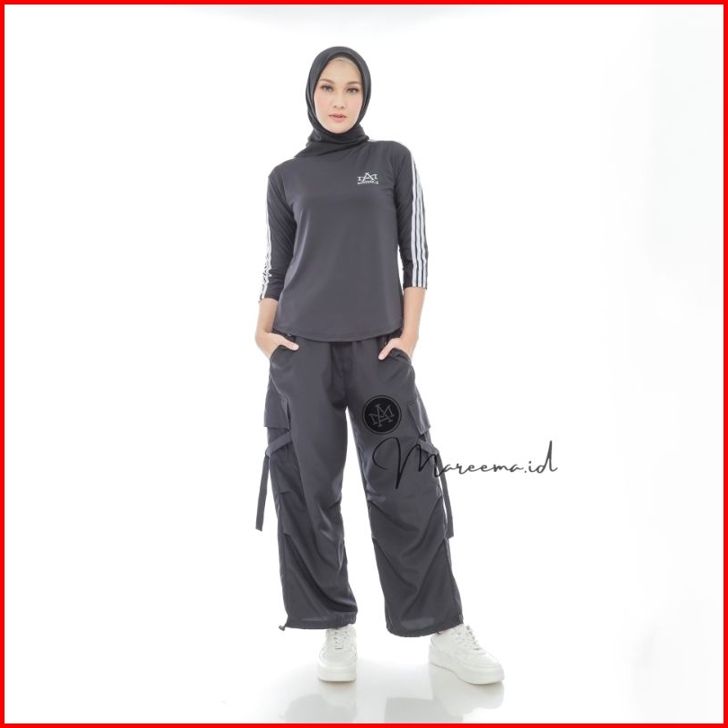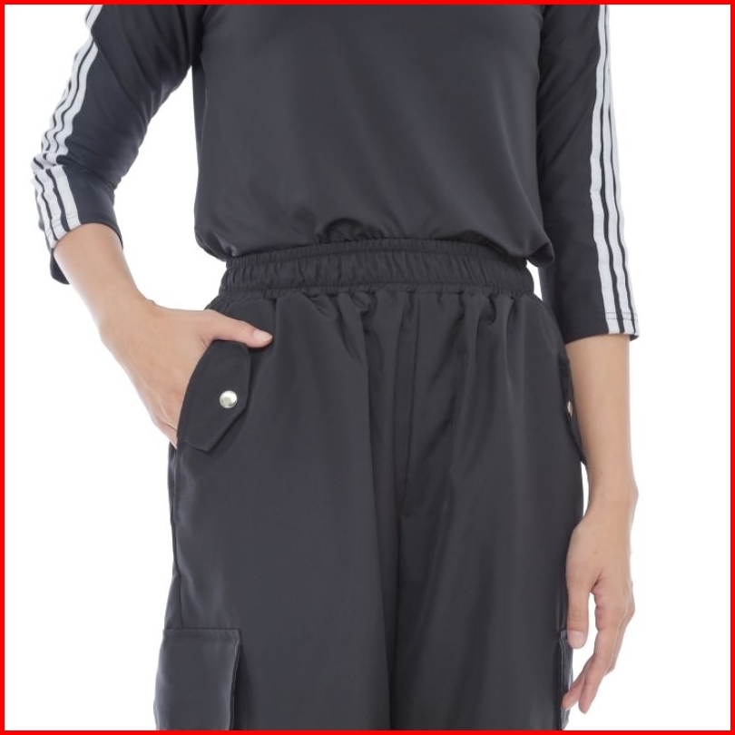 Celana Perasut Cargo Olahraga Sport Pants Wanita Korea Jumbo Highwaist Muslim Terbaru Kekinian