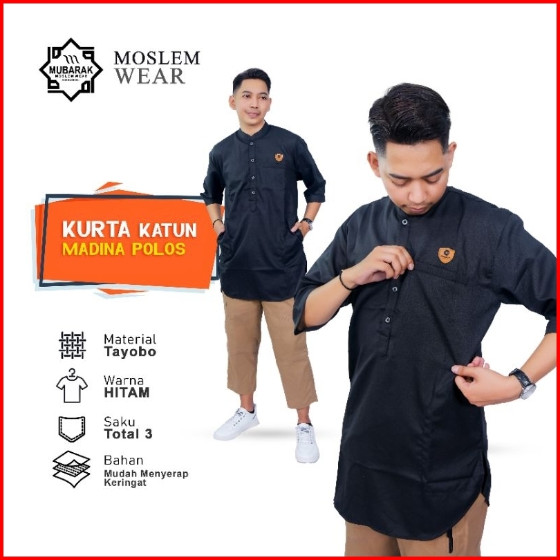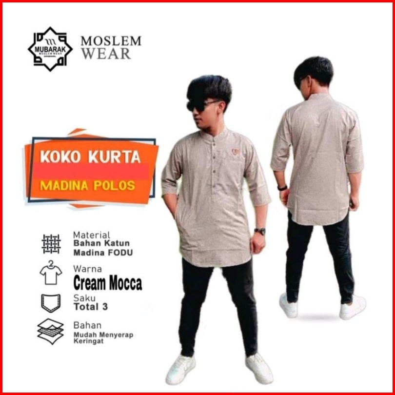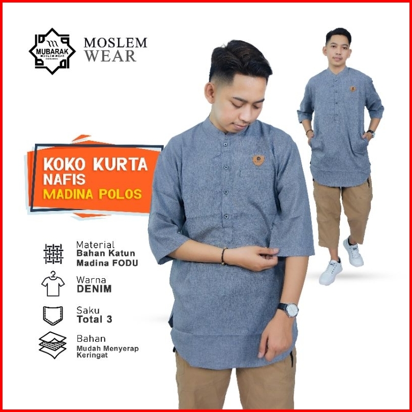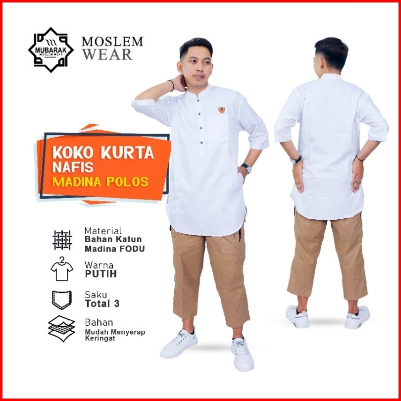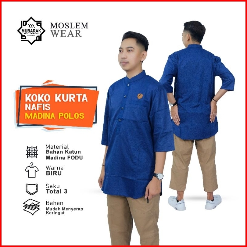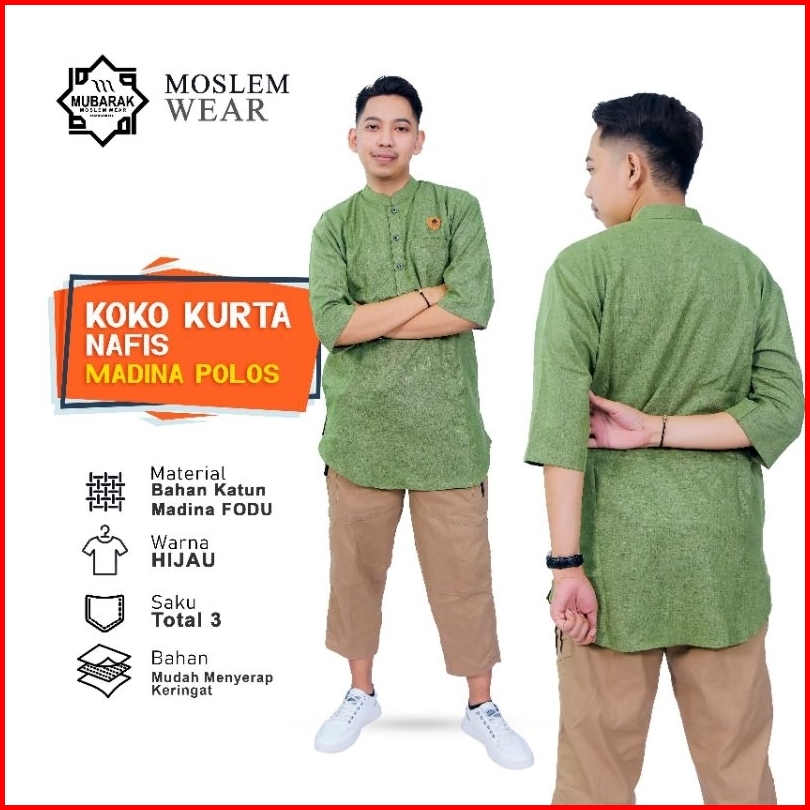 Baju Koko Kurta Nafis 3 4 Katun Madina Polos Moselm Wear