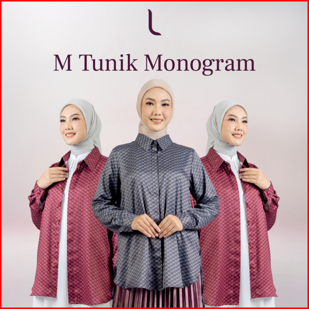 Elzatta Atasan Wanita Tunik Motif M Tunik Monogram