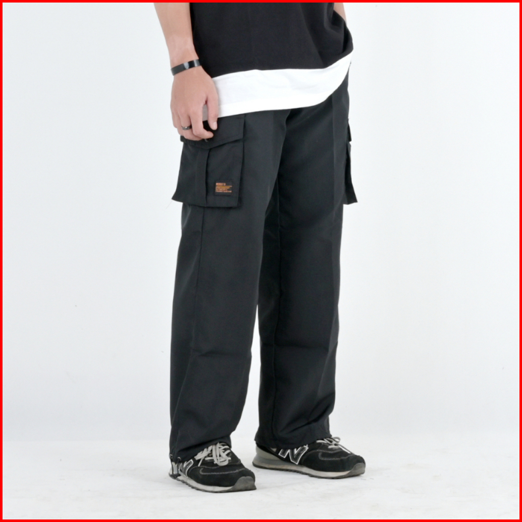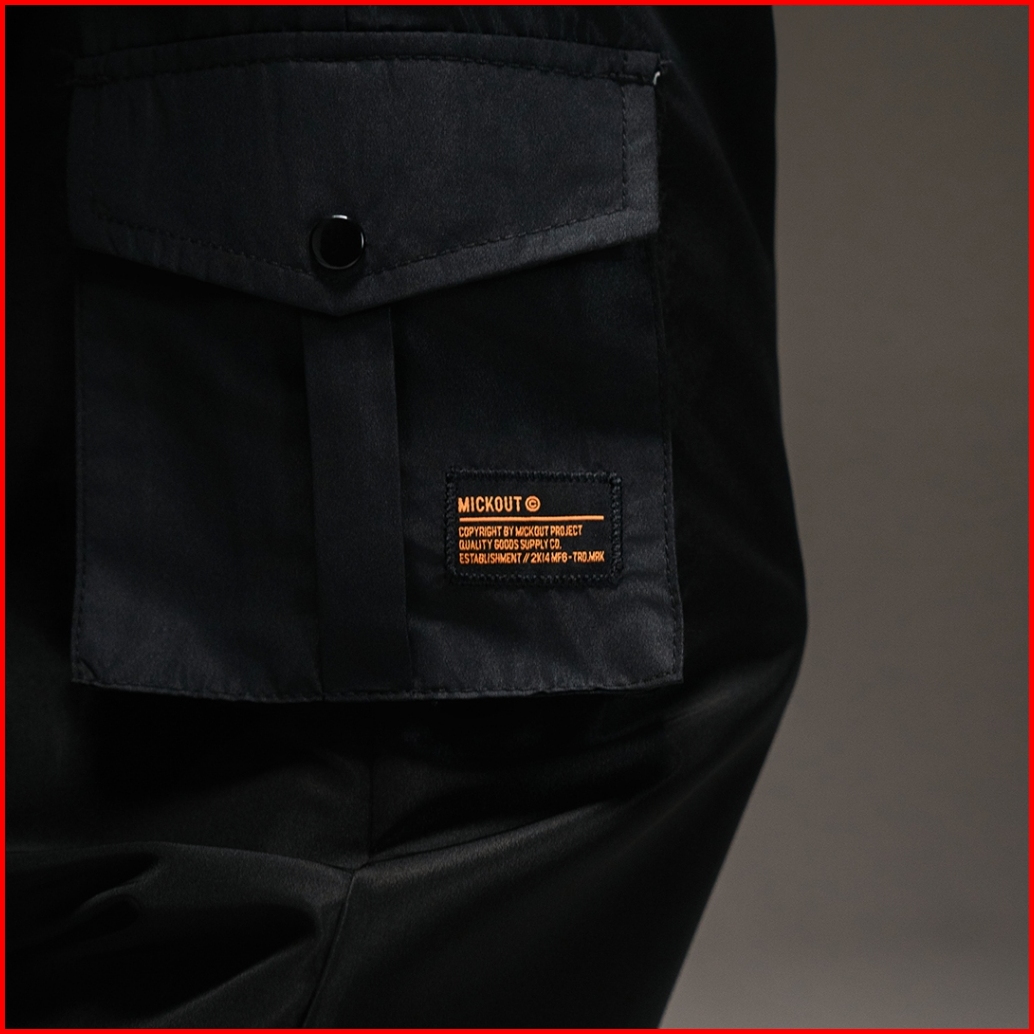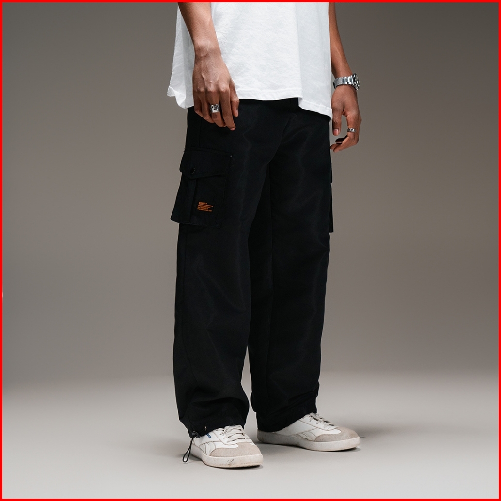 Mickout Fesselnd Cargo Pants - Celana Panjang Pria Taslan Loose Fit - Hitam