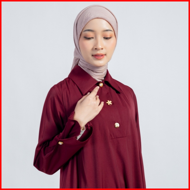 Elzatta Baju Gamis Wanita Polos Gamis Button Series