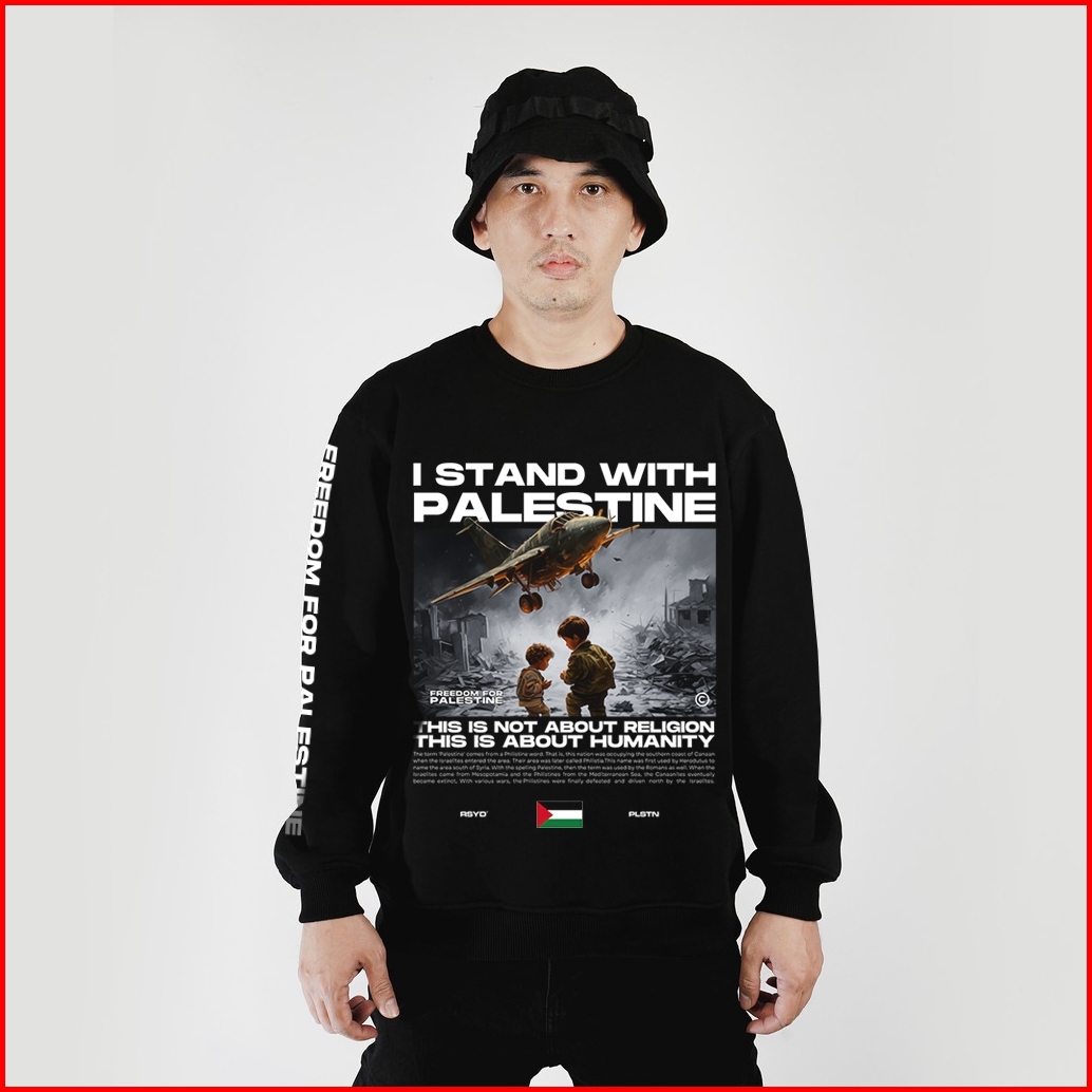 Rsyd I Stand With Palestine - Crewneck Baby Terry Hitam