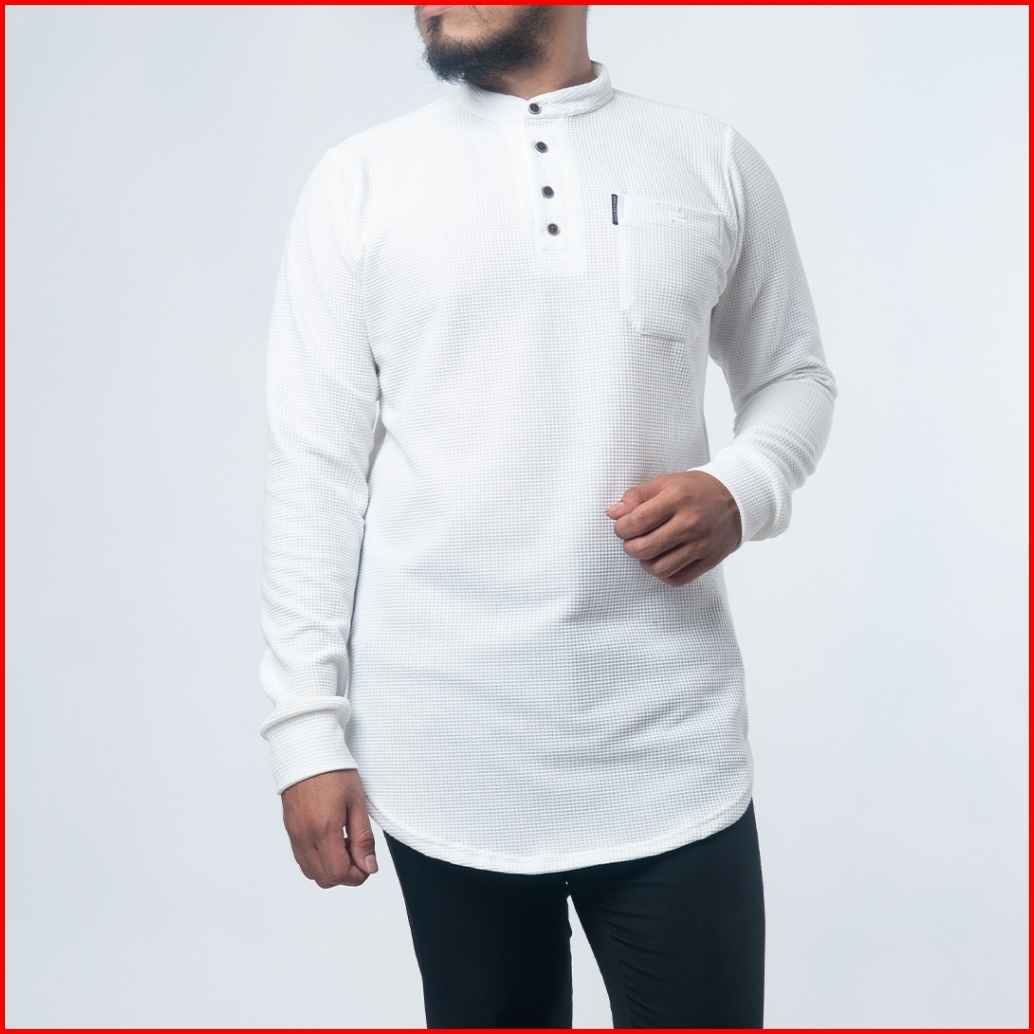 Khoirummah Kurta Zain Dewasa Baju Muslim Pria Dewasa Kemko Polos Lengan Panjang White