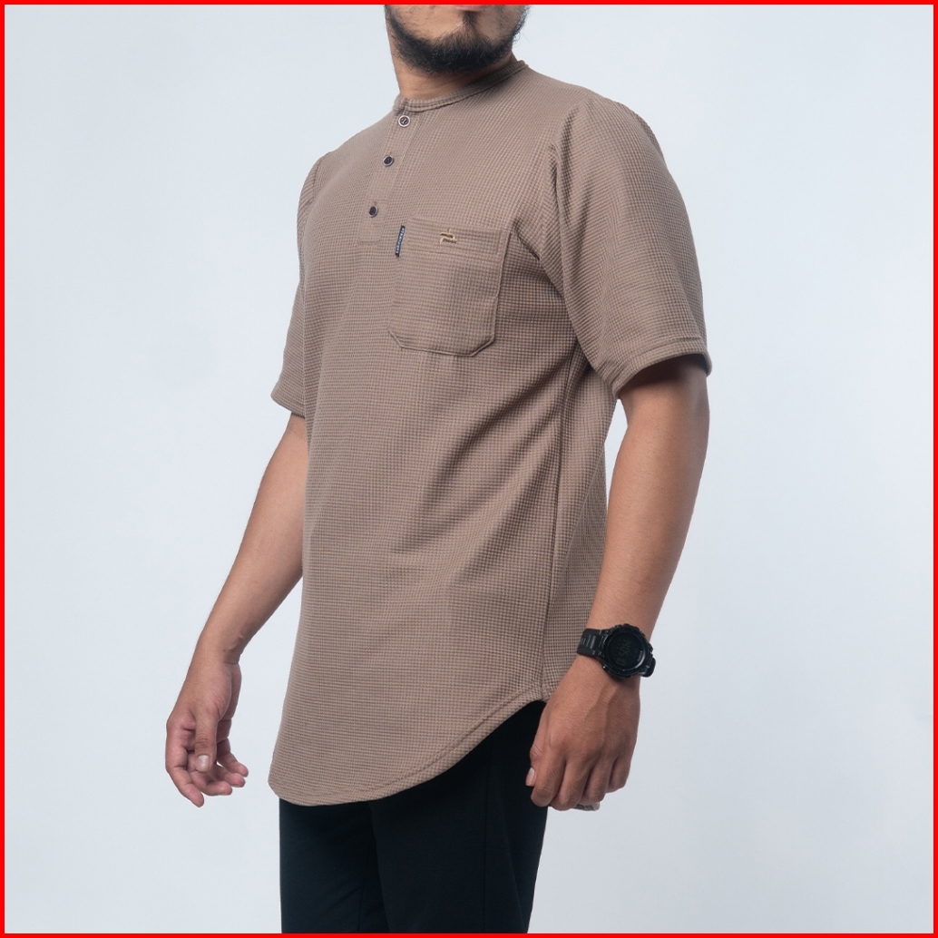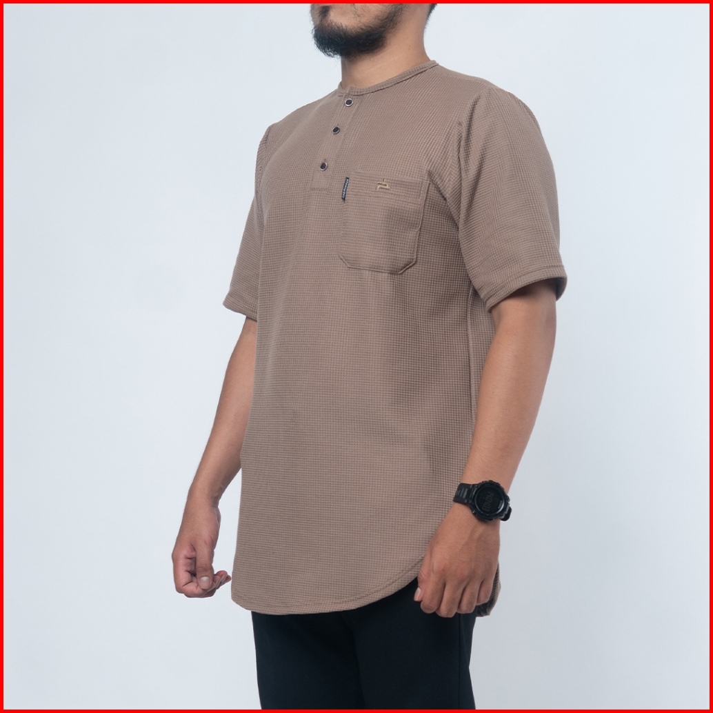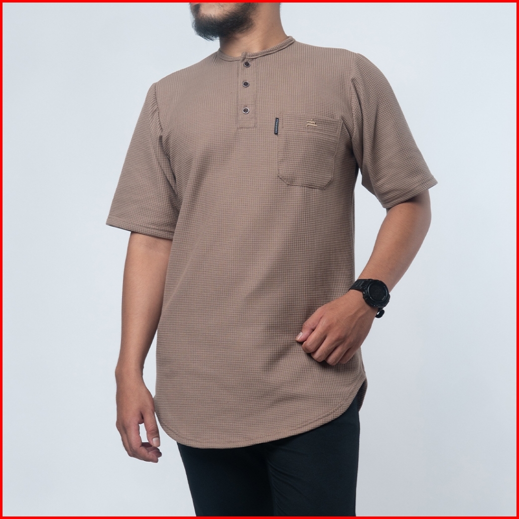 Khoirummah Kurta Uwais Dewasa Baju Muslim Kasual Koko Polos Kurta Pria Lengan Pendek Mocca