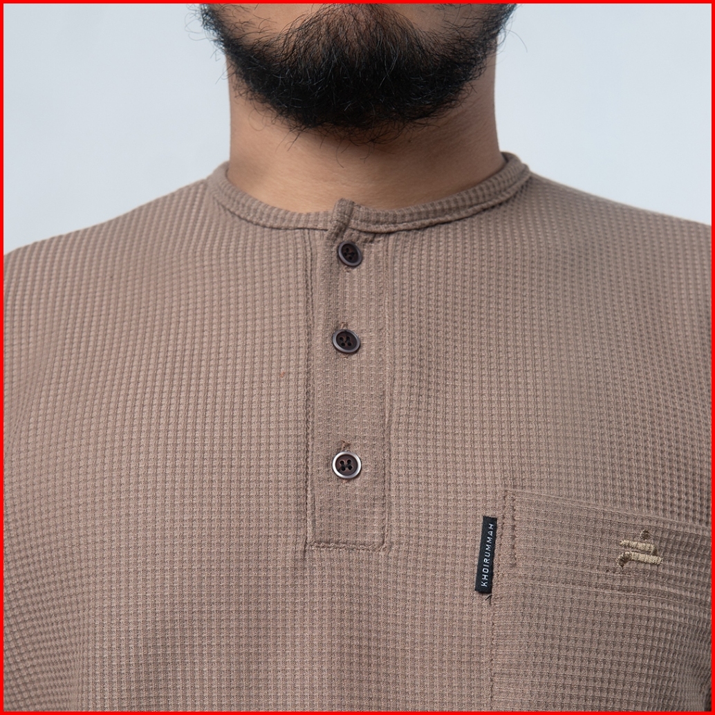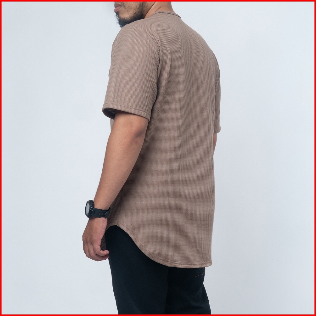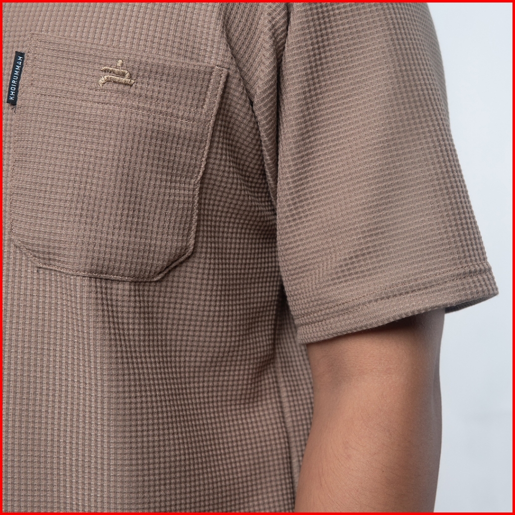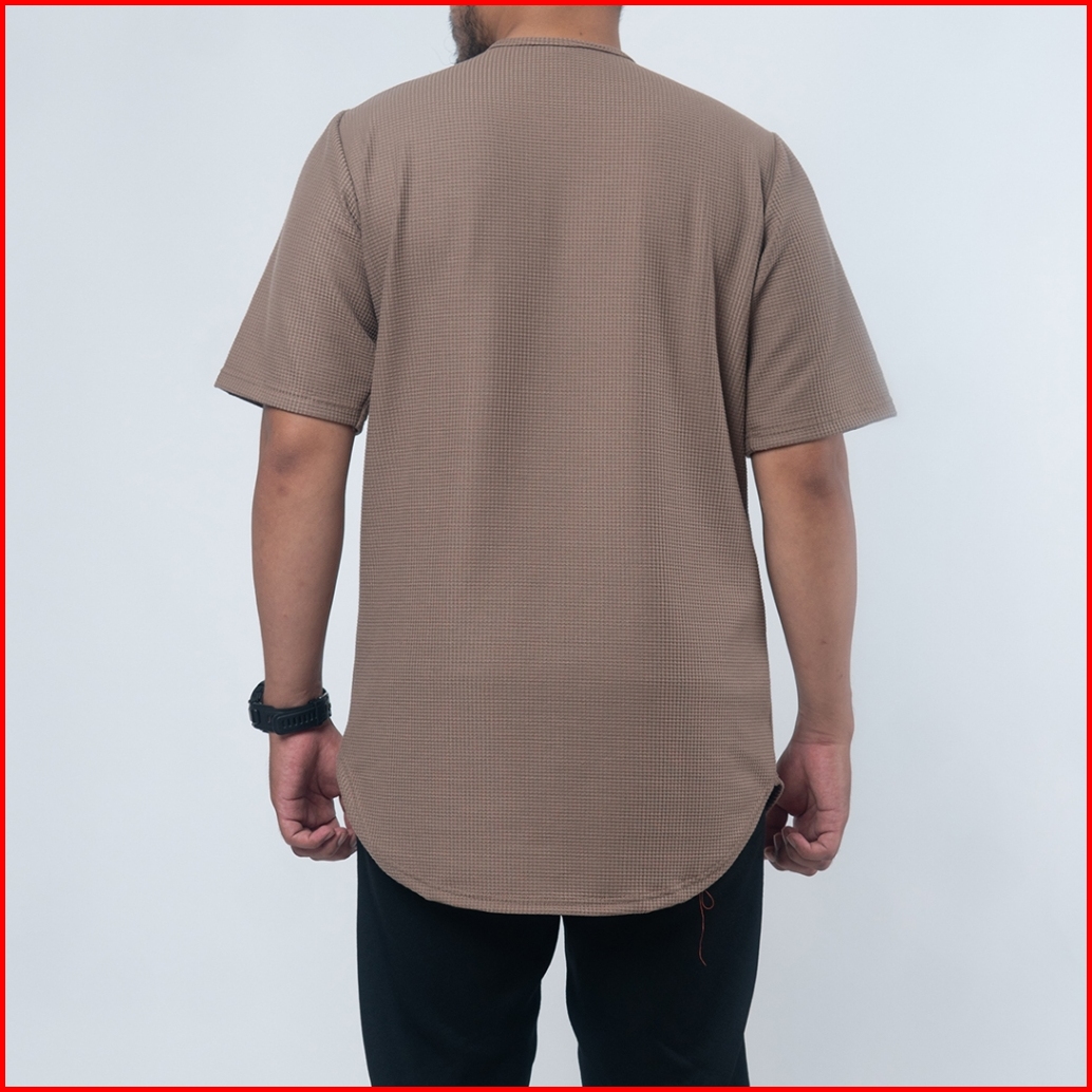 Khoirummah Kurta Uwais Dewasa Baju Muslim Kasual Koko Polos Kurta Pria Lengan Pendek Mocca