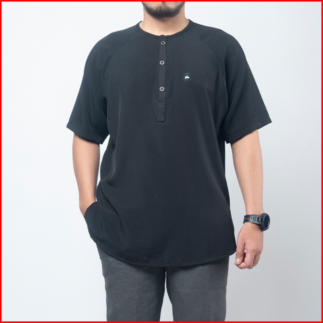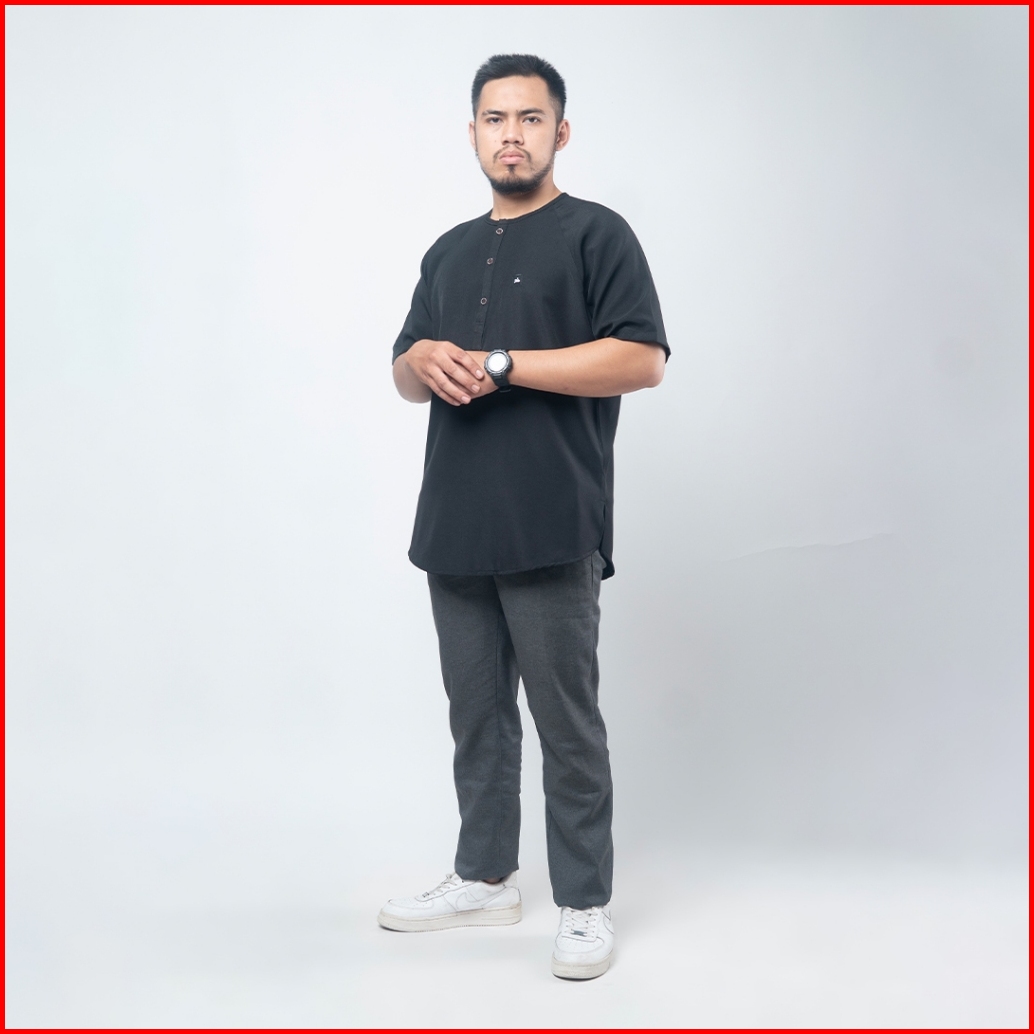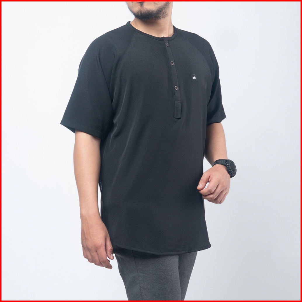 Khoirummah Kurta Qaish Dewasa - Koko Pria Dewasa - Kurta Polos Lengan Pendek - Black