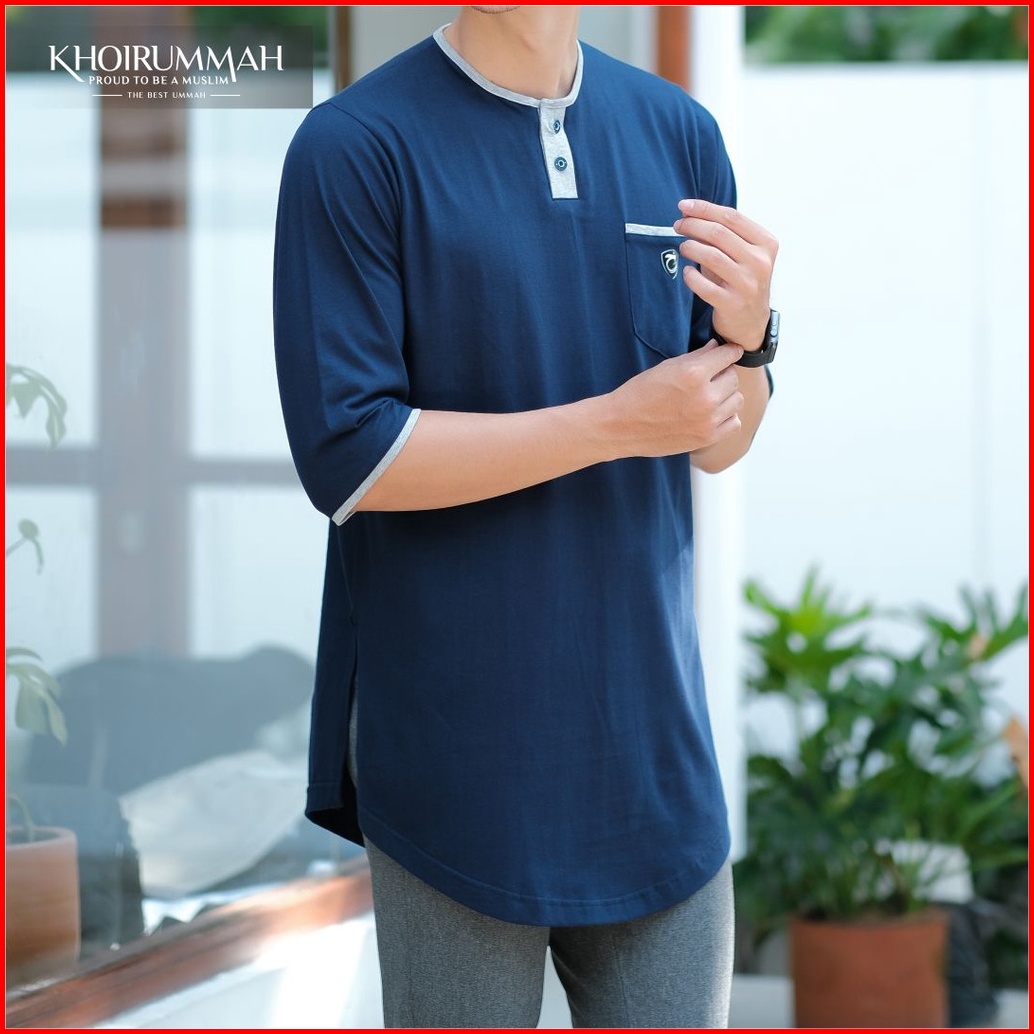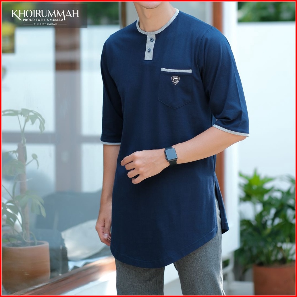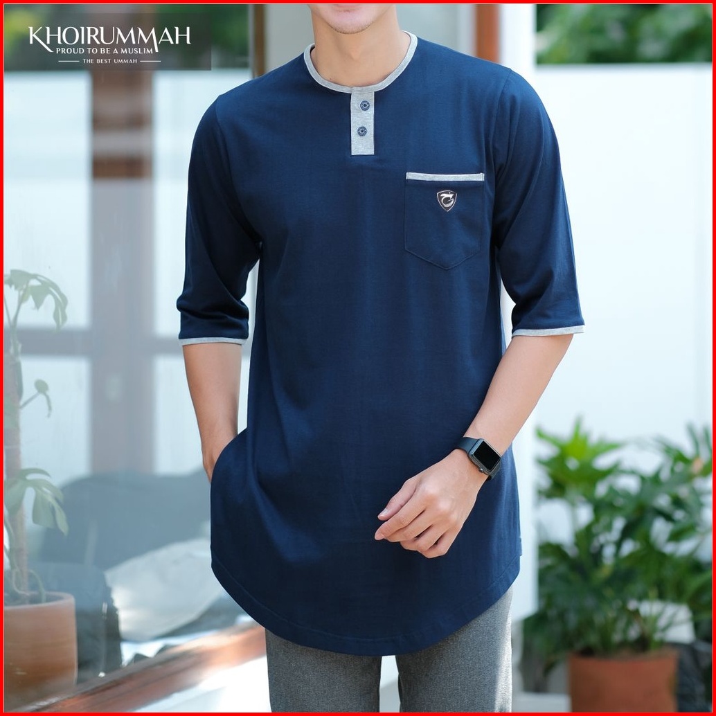 Khoirummah Koko Kurta Badar Baju Muslim Pria Dewasa Koko Polos Kurta Pakistan Lengan 3 4 Navy