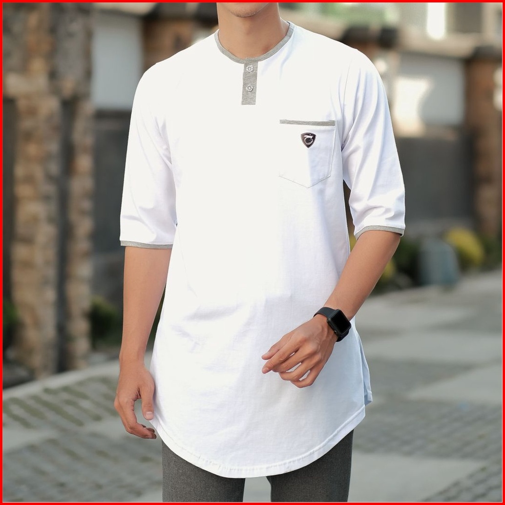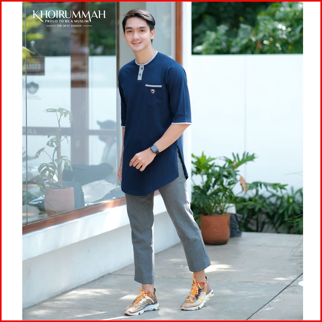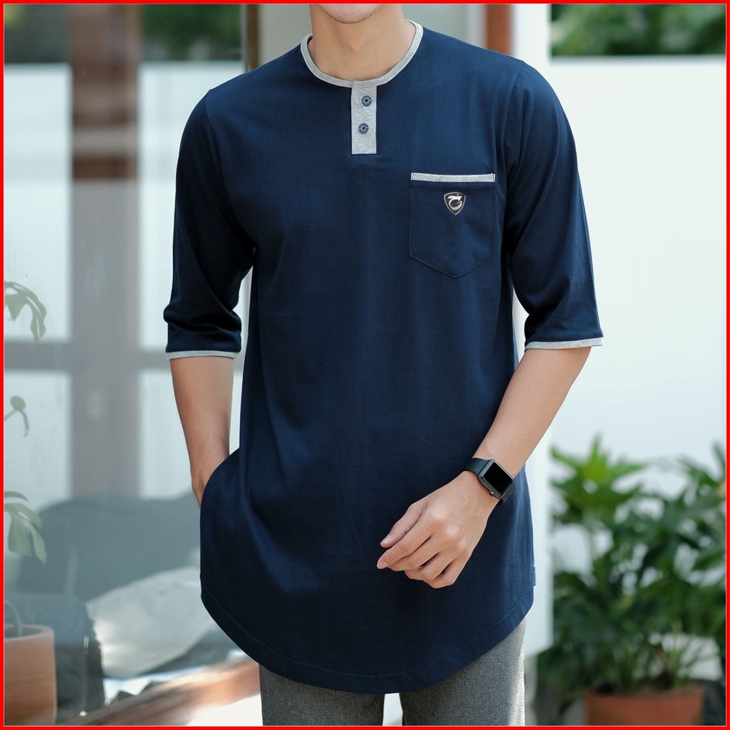 Khoirummah Koko Kurta Badar Baju Muslim Pria Dewasa Koko Polos Kurta Pakistan Lengan 3 4 Navy