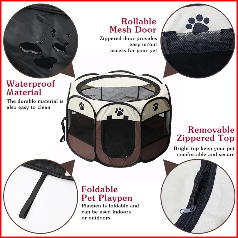 Pagar Tenda Lipat Portabel Dengan 8 Panel Untuk Anjing Kucing Kandang Lipat Hewan Bahan Kain