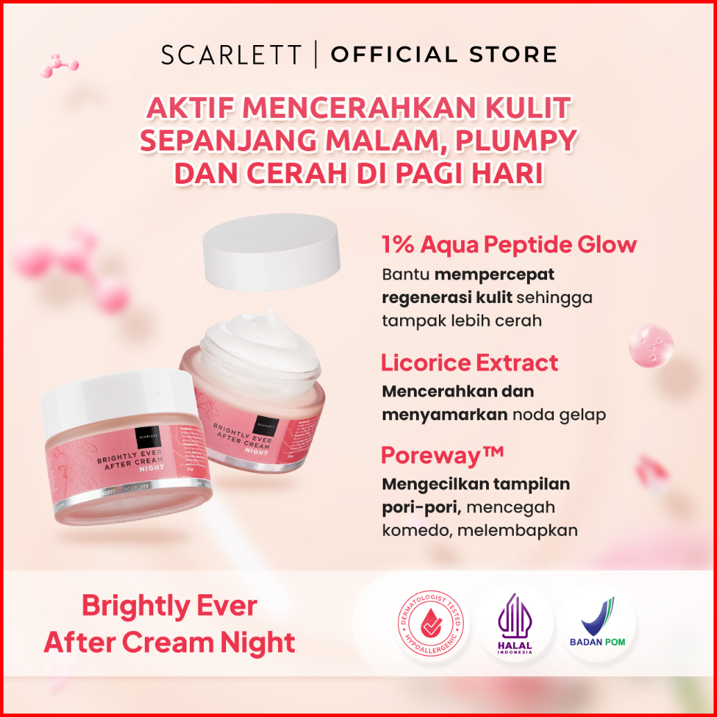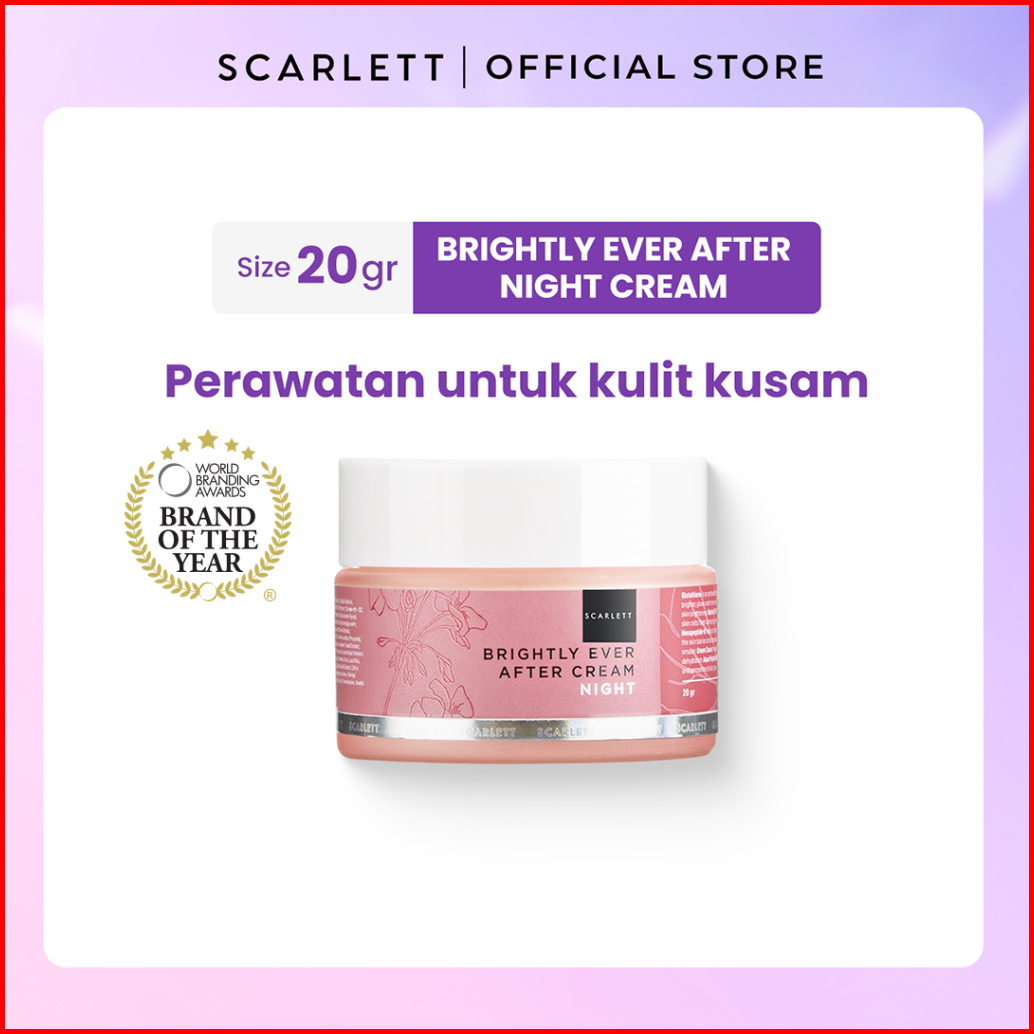 Scarlett Whitening Brightly Ever After Night Cream - Moisturizer Krim Pelembab Wajah Untuk Mencerahkan Melembabkan Memud
