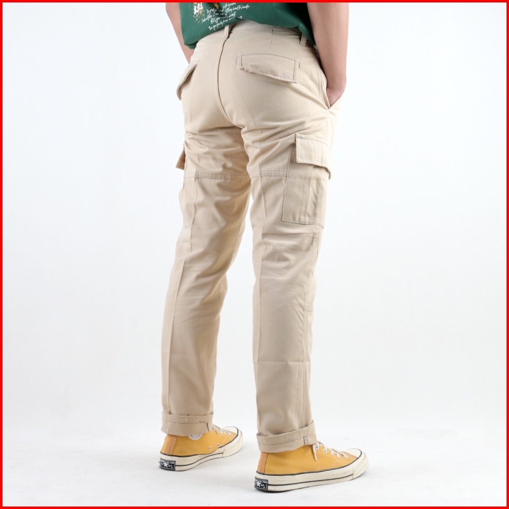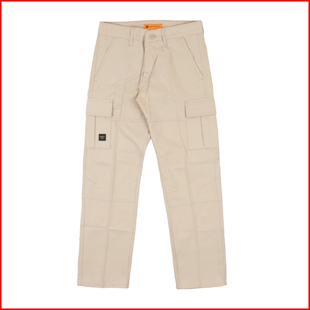 Mickout Slava Cargo Pants - Celana Panjang Pria Rigid Cotton Straight Fit - Cream