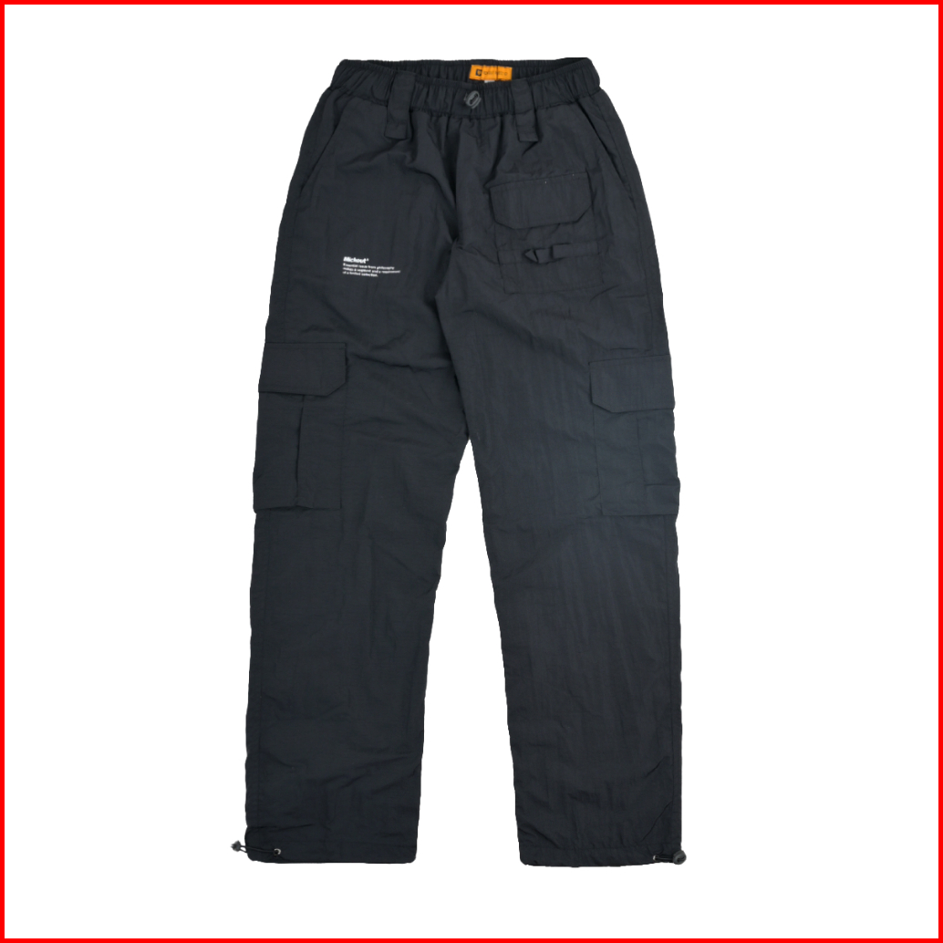Mickout Siegreich Cargo Pants - Celana Panjang Crinkle Relaxed Fit Pria Unisex - Hitam