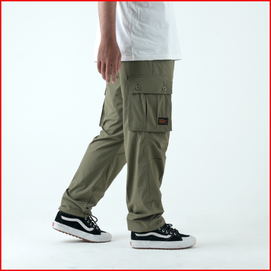 Mickout Rieseg Cargo Pants - Celana Panjang Nylon Cotton Relaxed Fit Pria - Army
