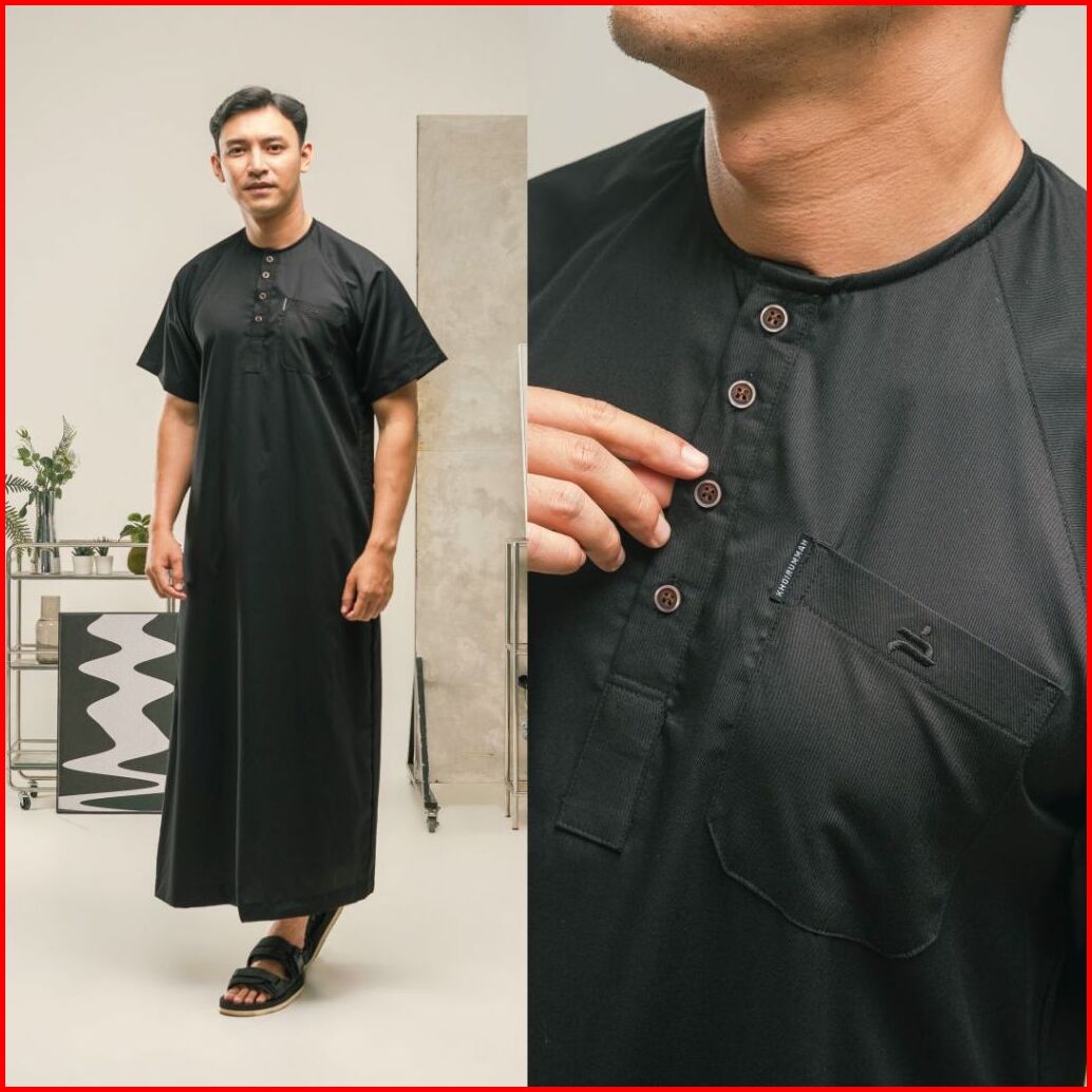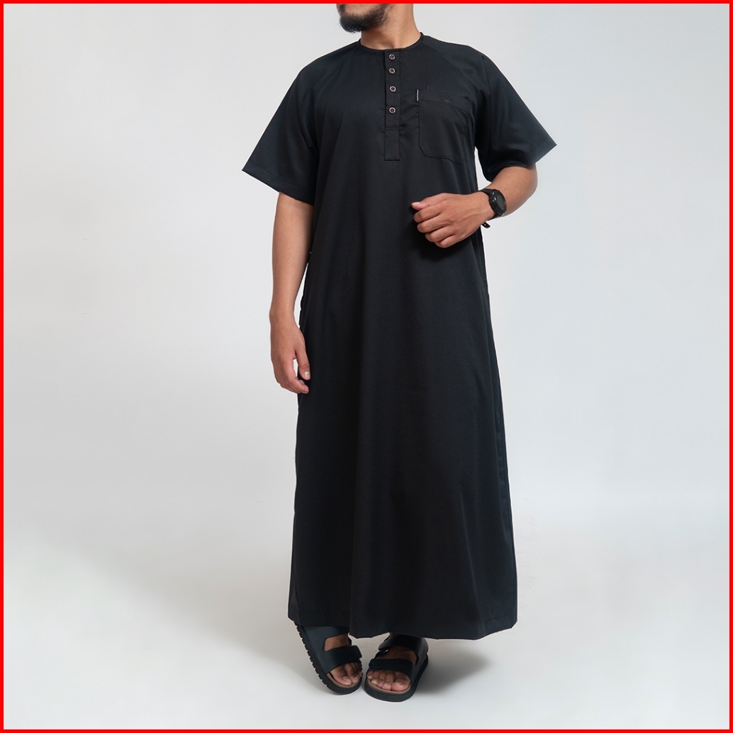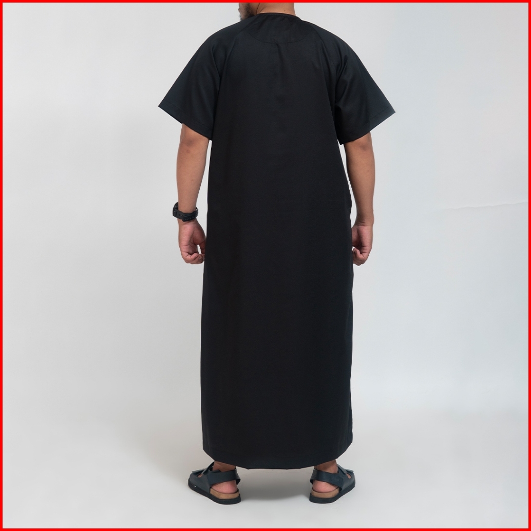 Khoirummah Jubah Musa Dewasa Baju Gamis Muslim Pria Dewasa Jubah Polos Lengan Pendek - Black
