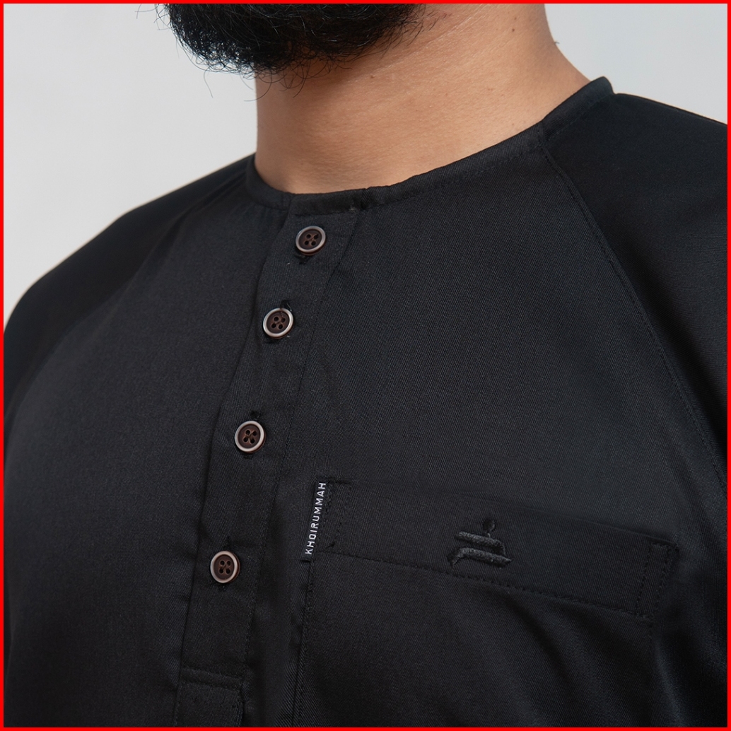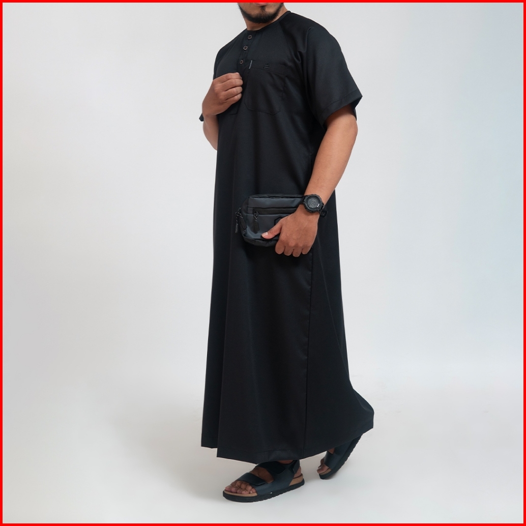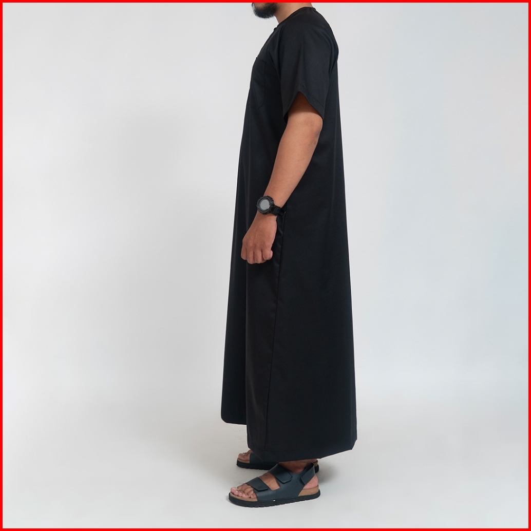 Khoirummah Jubah Musa Dewasa Baju Gamis Muslim Pria Dewasa Jubah Polos Lengan Pendek - Black