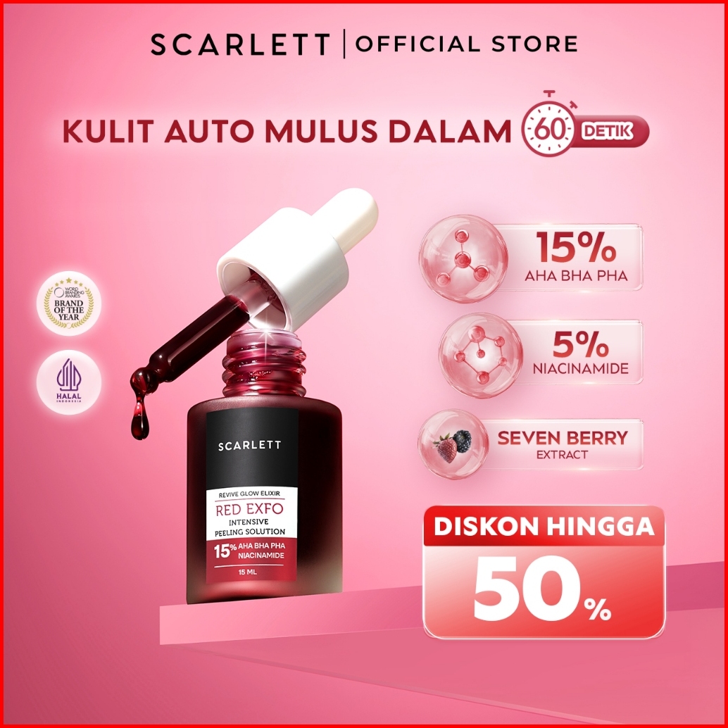 Scarlett Revive Glow Elixir Red Exfo Intensive Peeling Solution - Peeling Serum Eksfoliasi Wajah Mencerahkan Dan Halus D