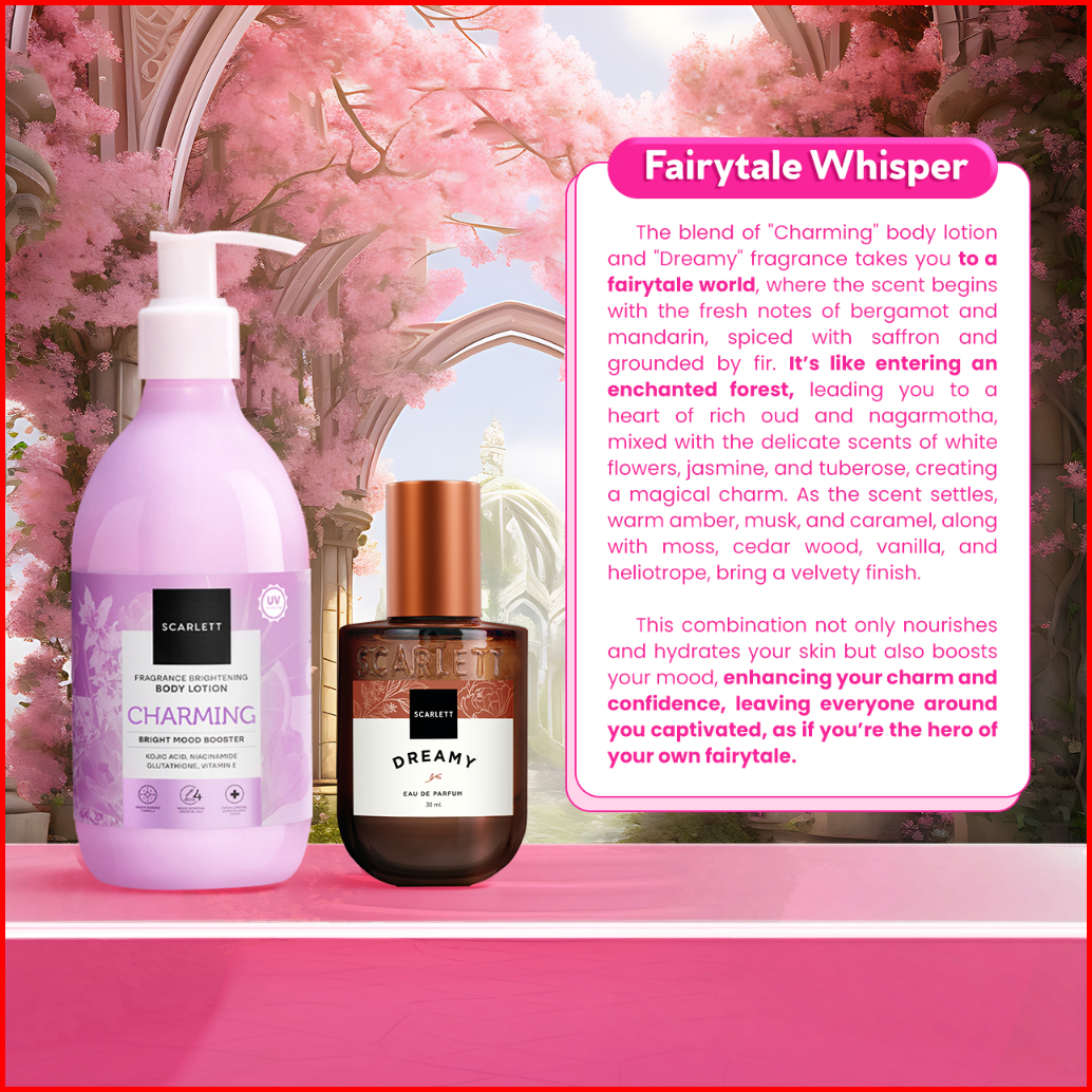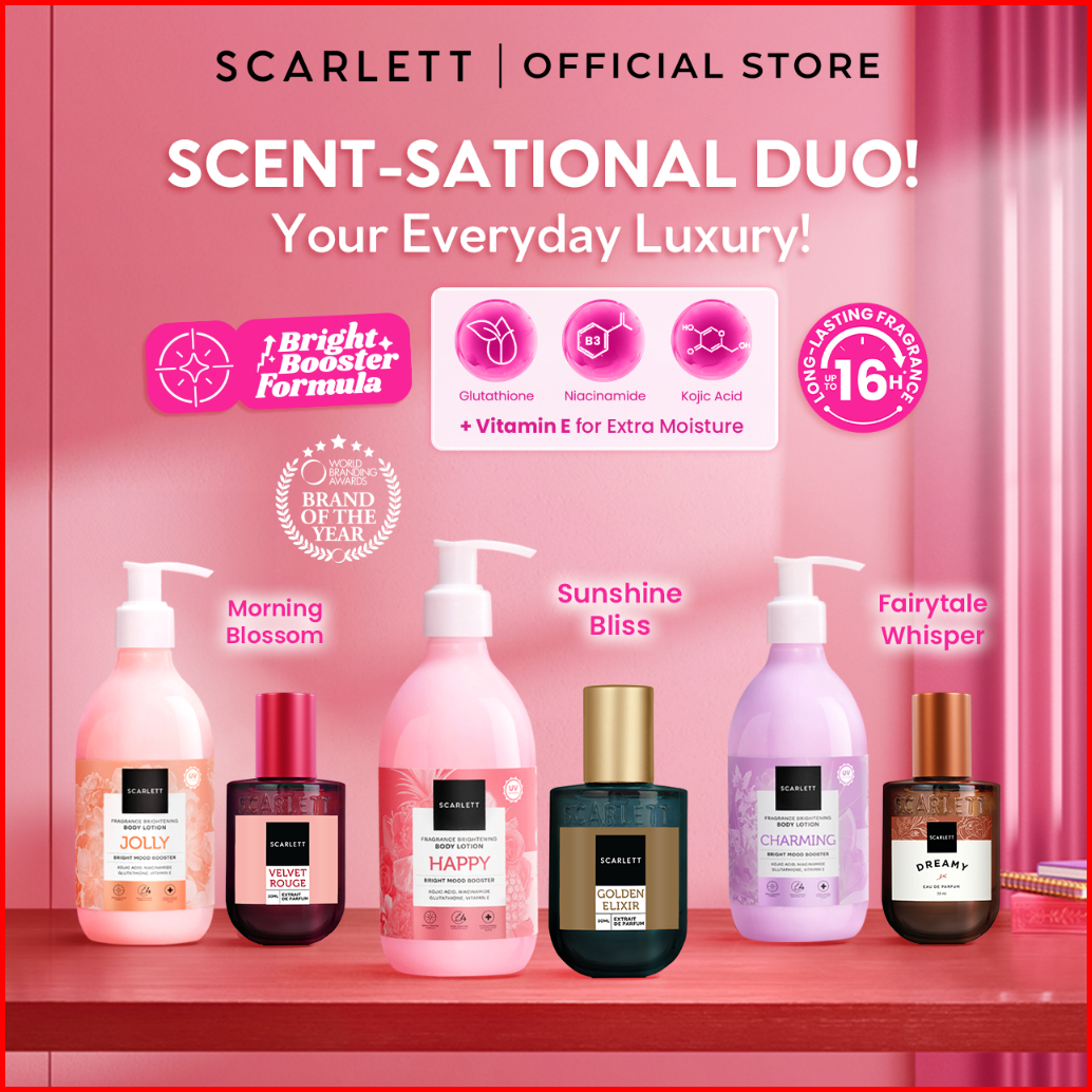 Scarlett Whitening Scent-sational Duo - Eau De Parfum Velvet Rouge Golden Elixir Dreamy Body Lotion Mood Booster Jolly H