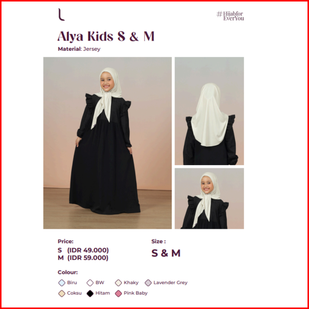 Elzatta Hijab Jilbab Polos Bergo Anak Jersey Alya Kids S M