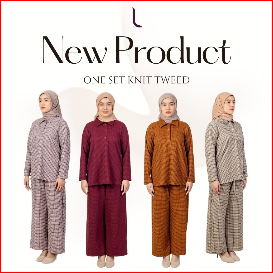Elzatta Stelan Wanita One Set Knit Tweed