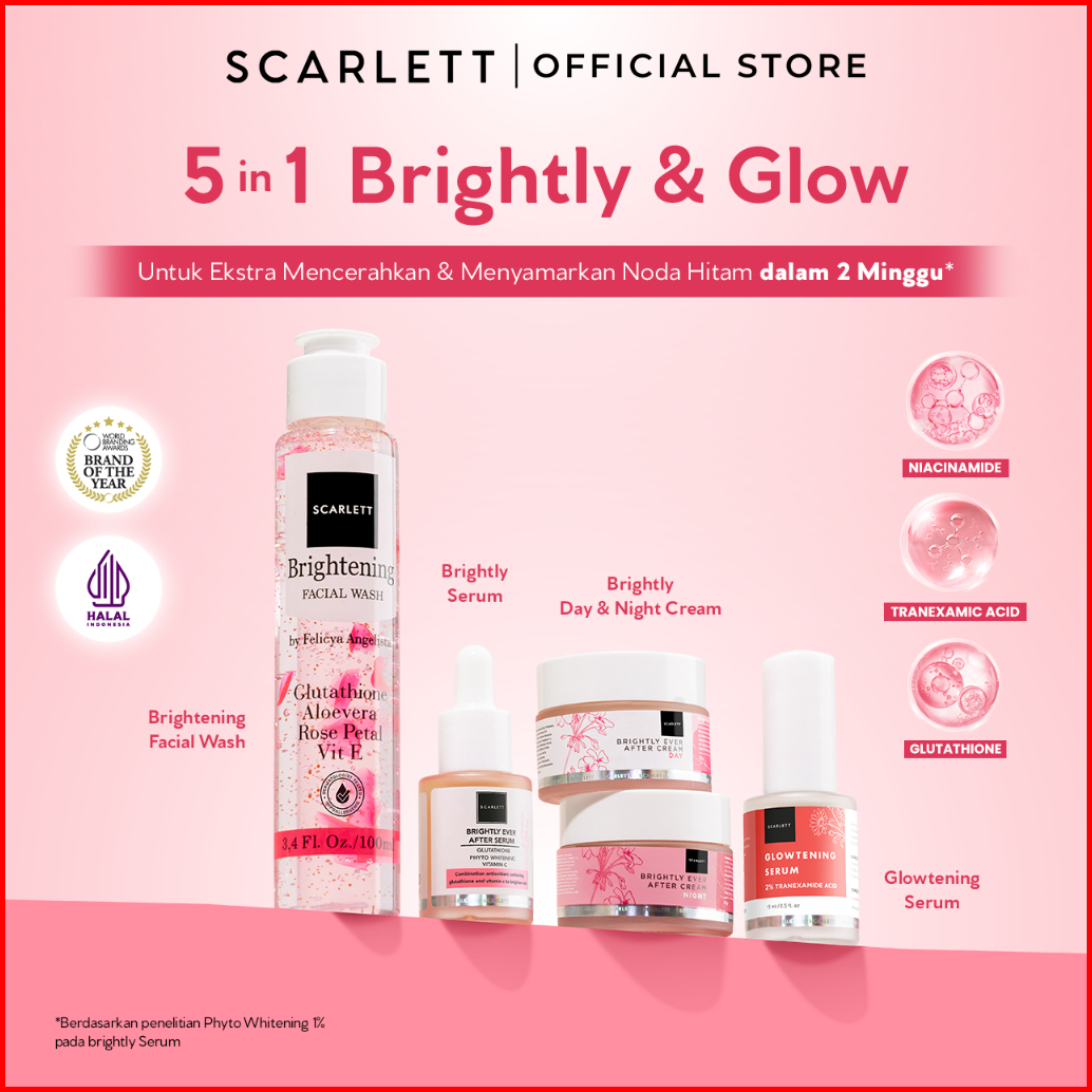Scarlett Brightly Ever After Series - Paket Lengkap Mencerahkan Wajah 5in1-brightening Moisturizer Serum Cleanser Toner