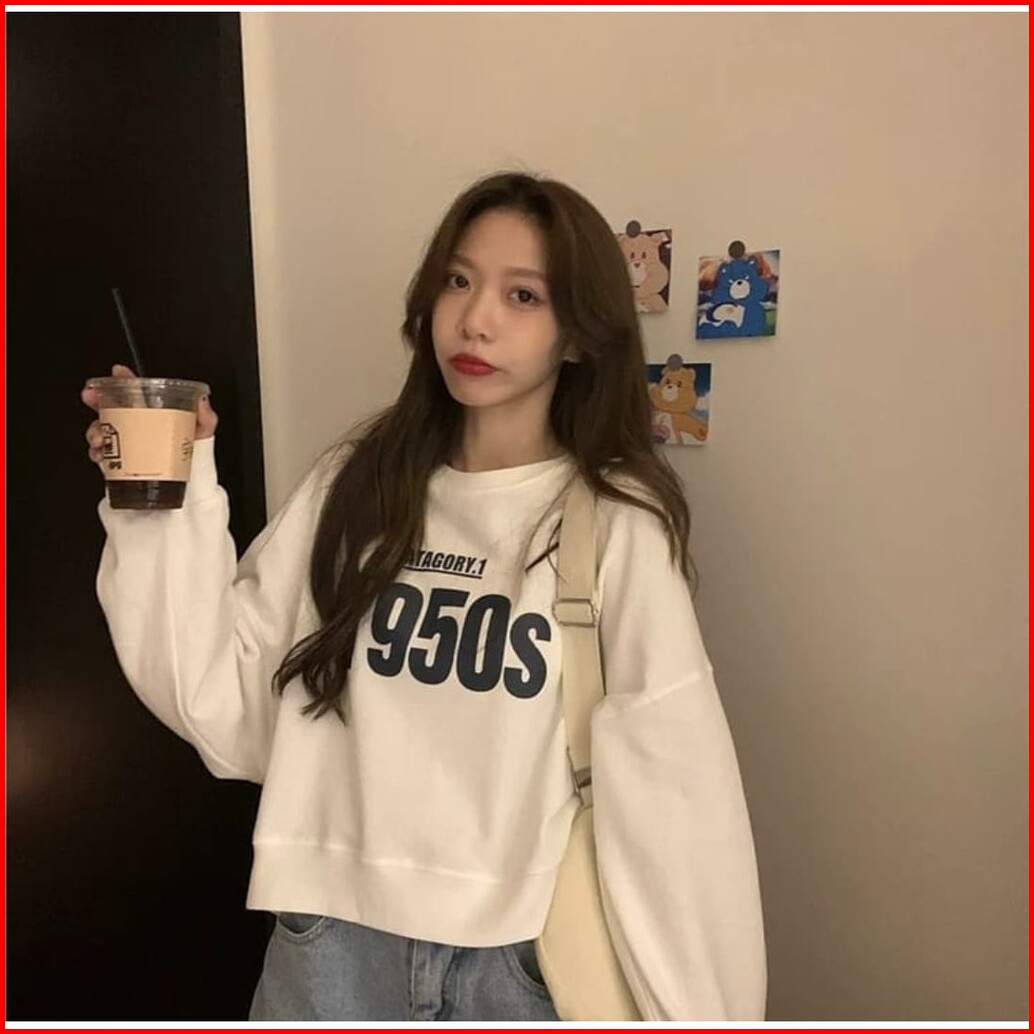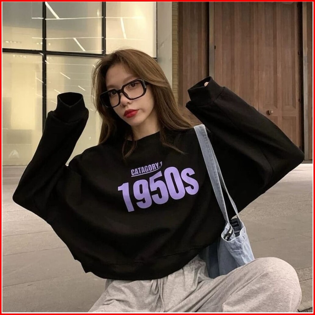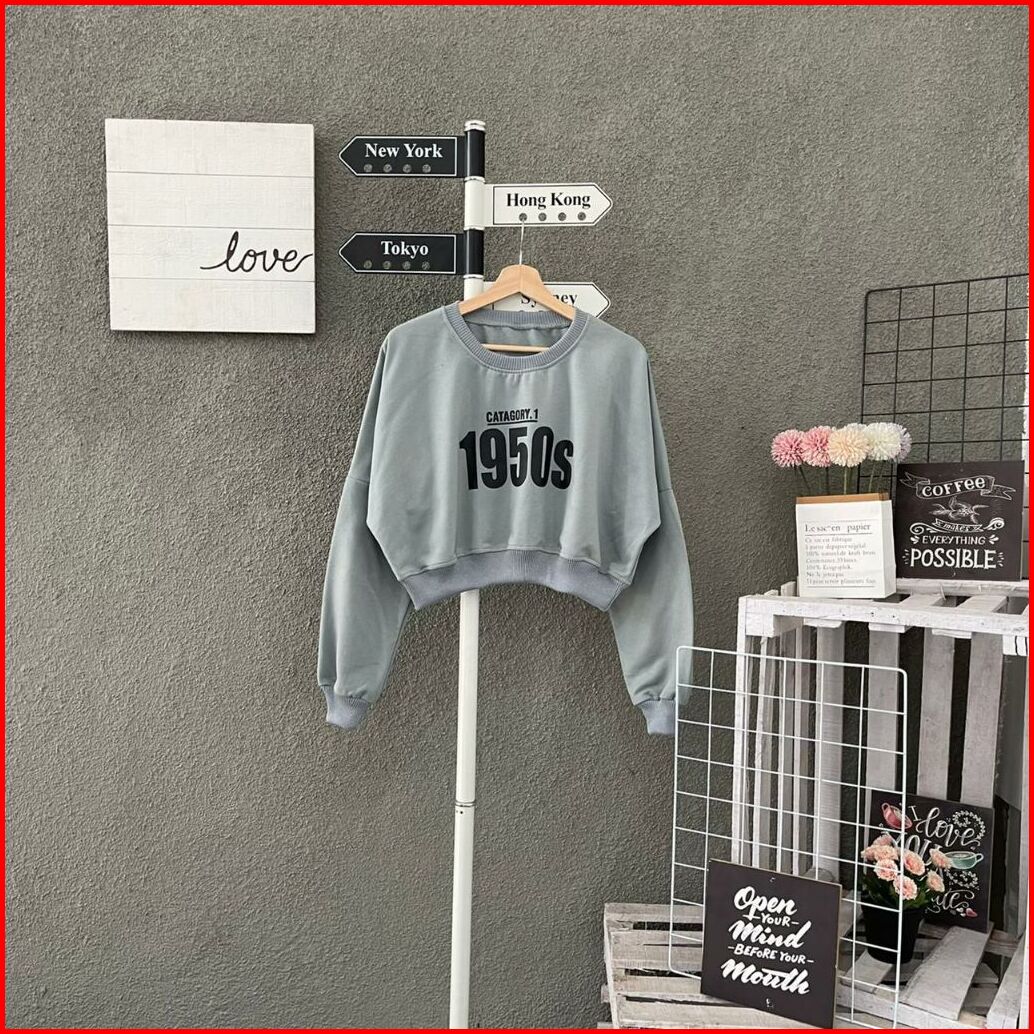Sweater Crop Oversize Wanita Fleece 1950s Nyaman