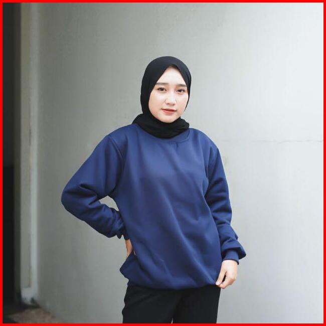 Sweater Crewneck Basic Polos Bahan Flece Allsize