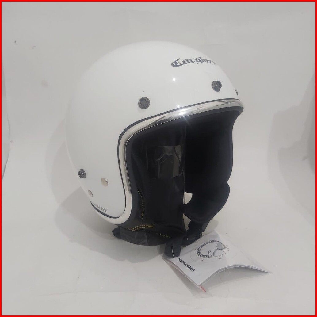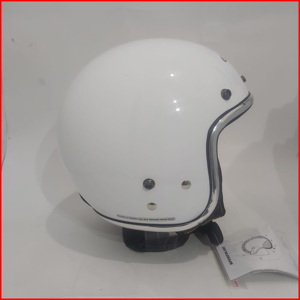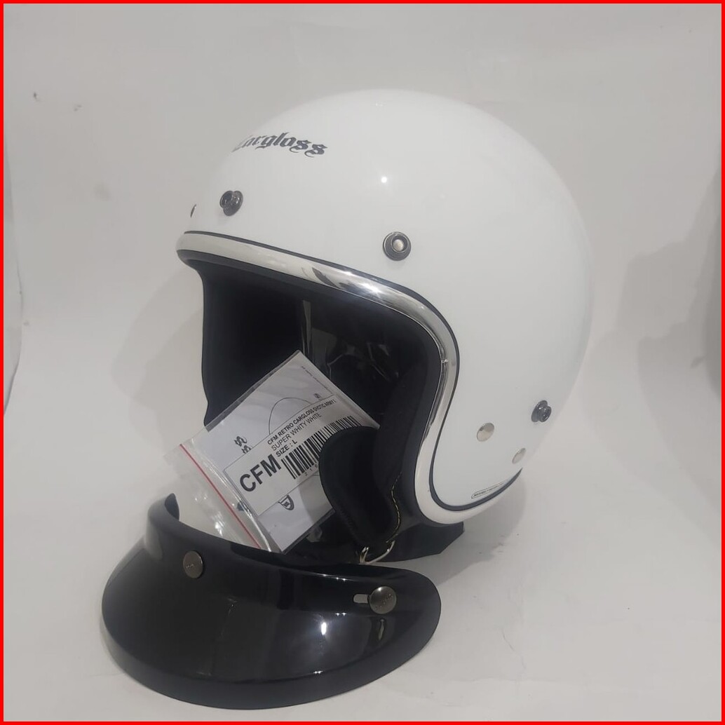 Helm Cargloss Retro White Putih Gloss List Chroom