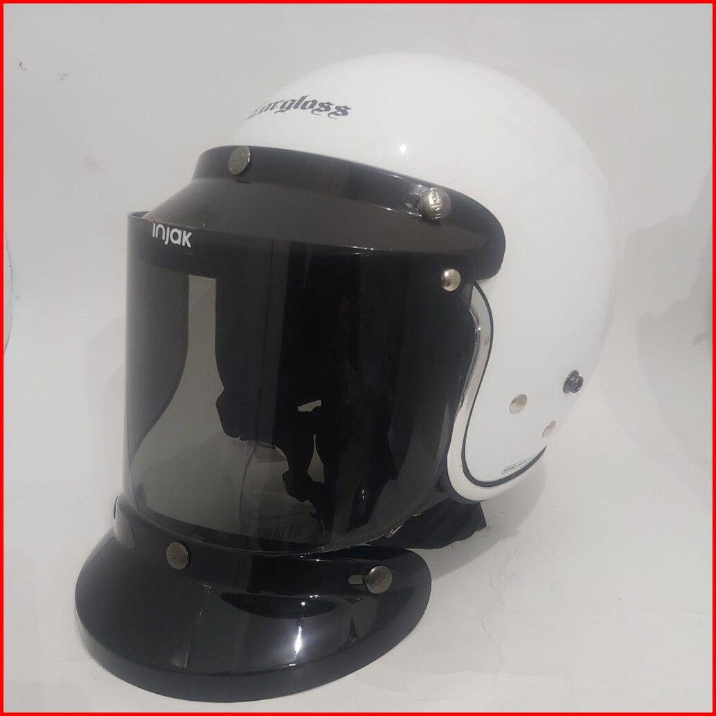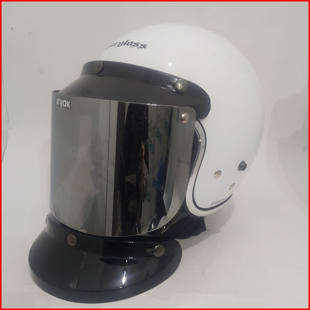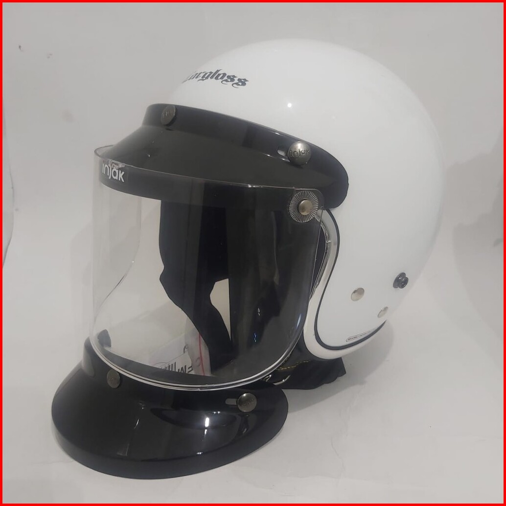 Helm Cargloss Retro White Putih Gloss List Chroom