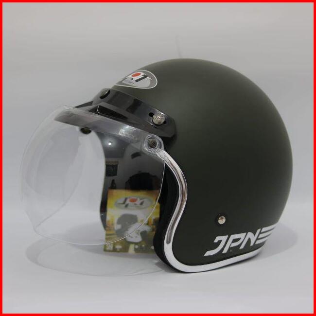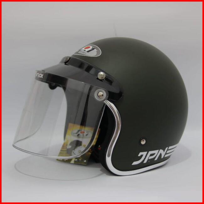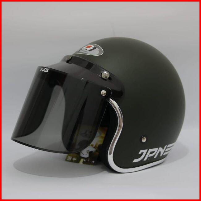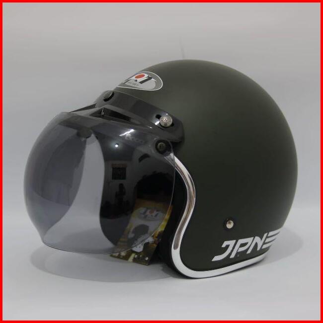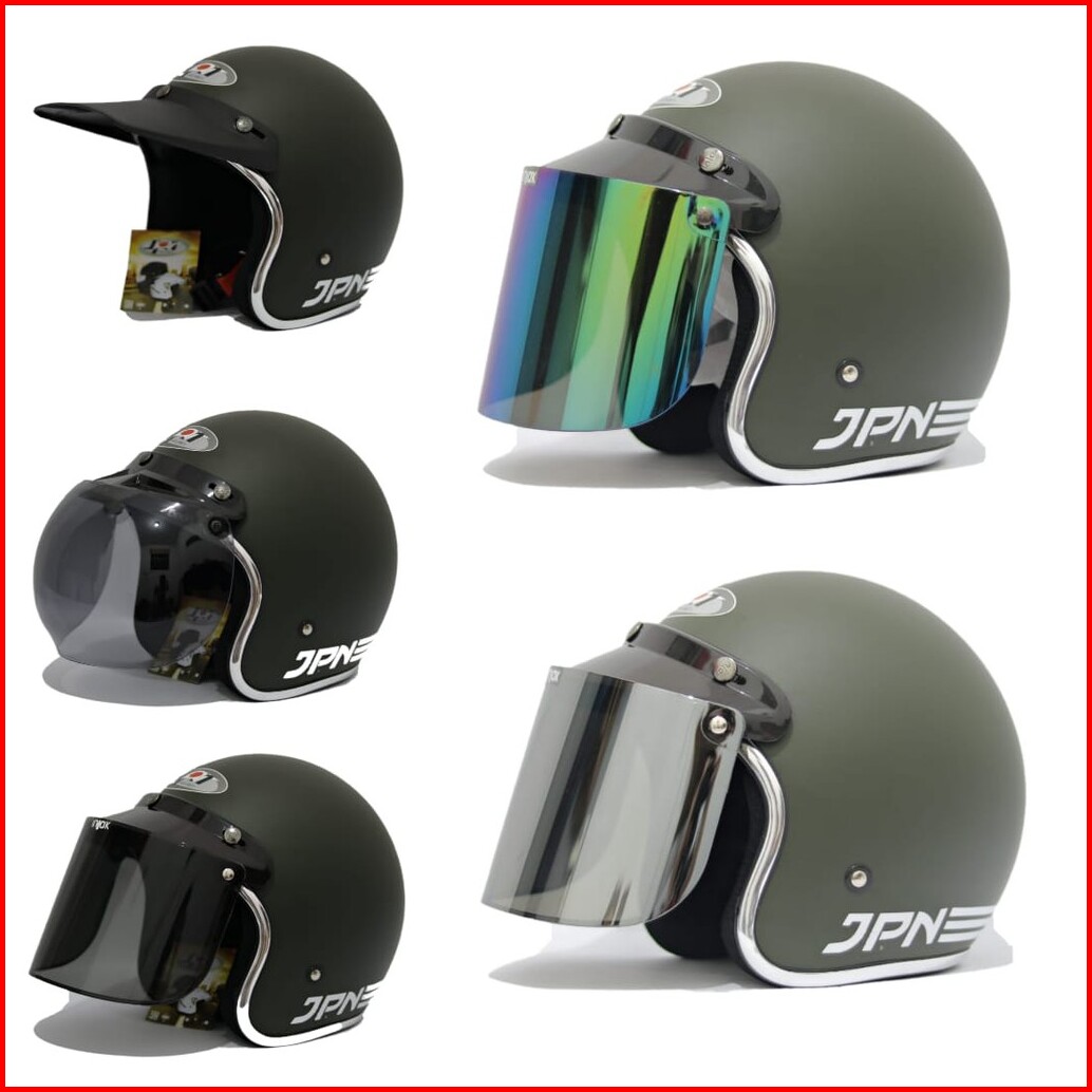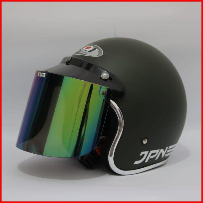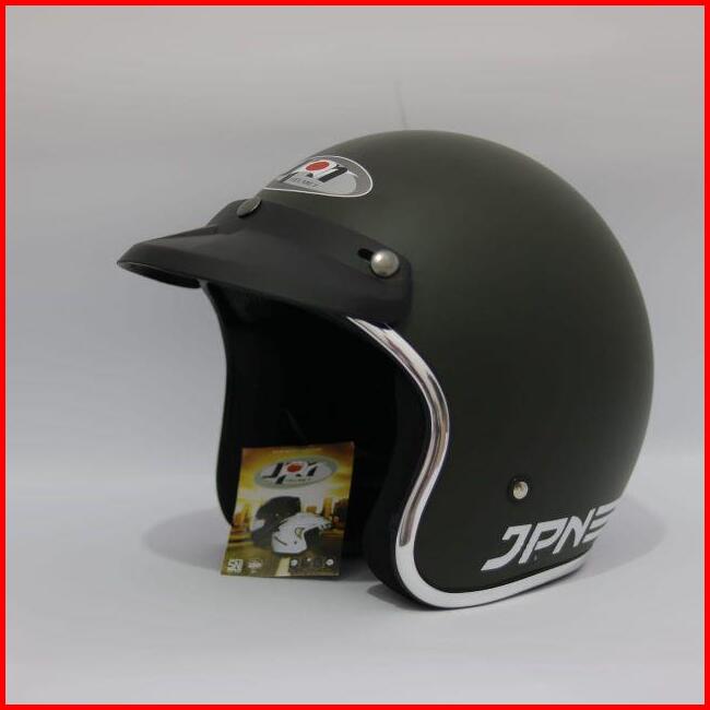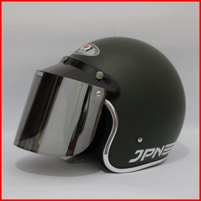 Helm Bogo Jpn Retro List Chrome Army Doff Polos Flat Visor Kaca Datar Cembung