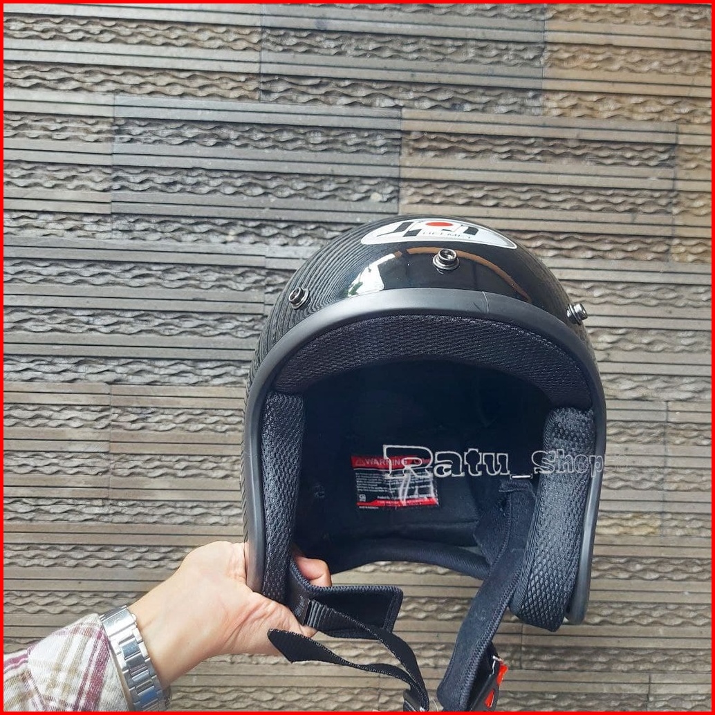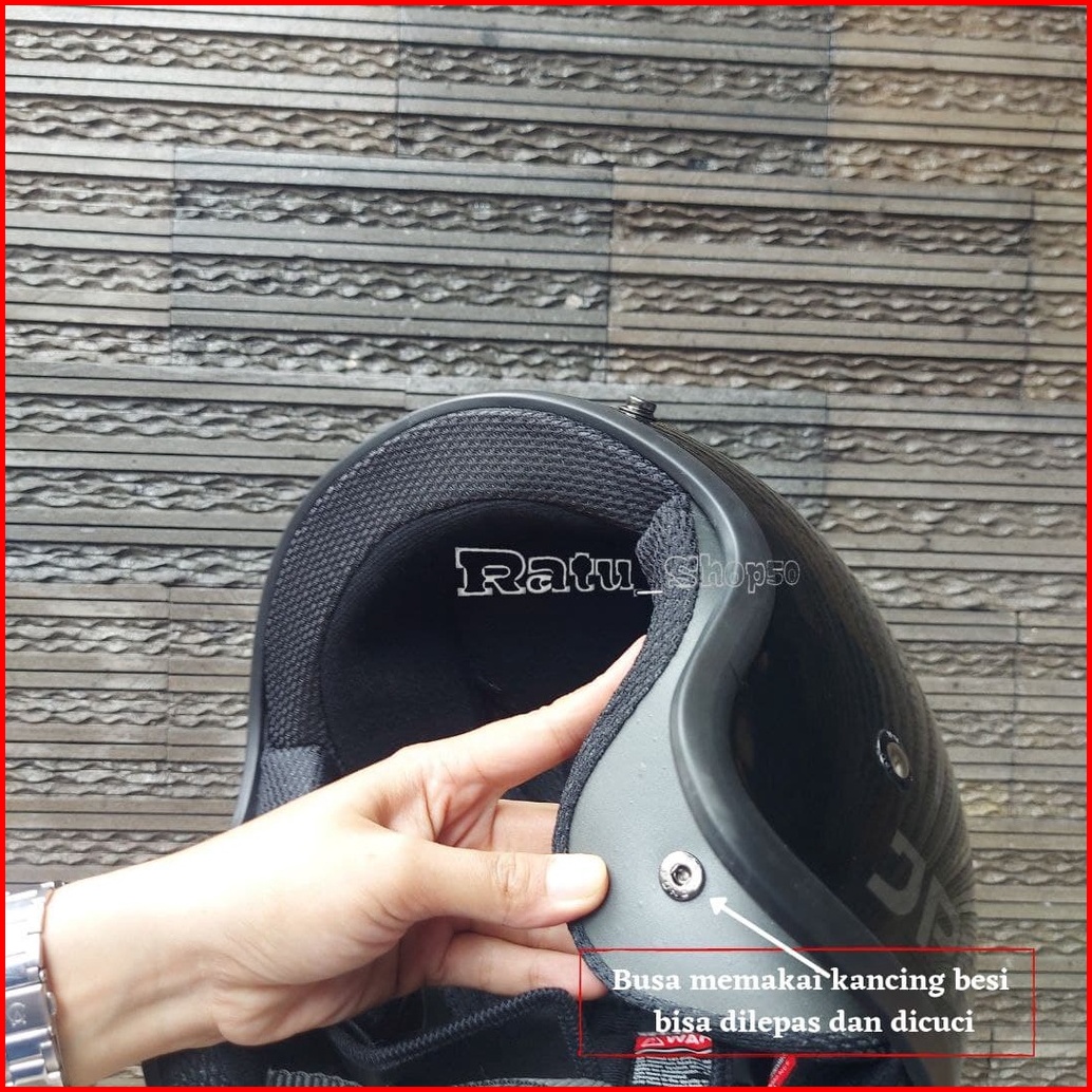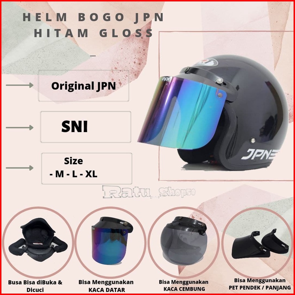 Helm Jpn Retro Hitam Glossy Paket Murah Kaca Datar Cembung