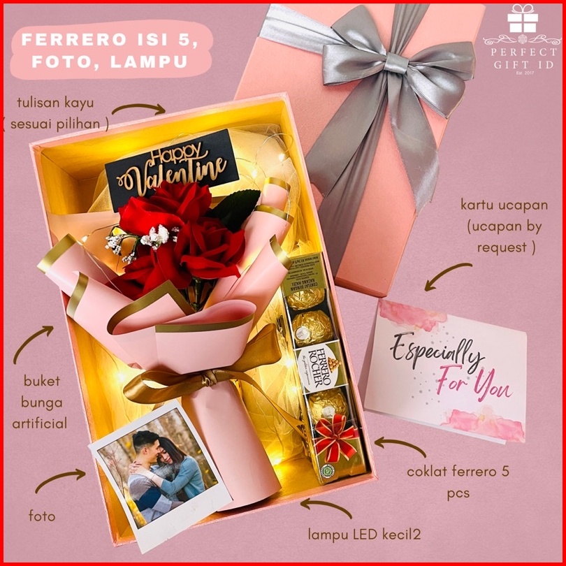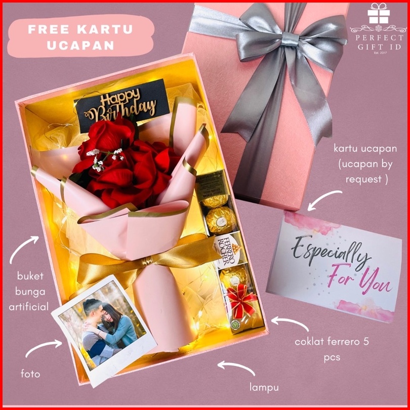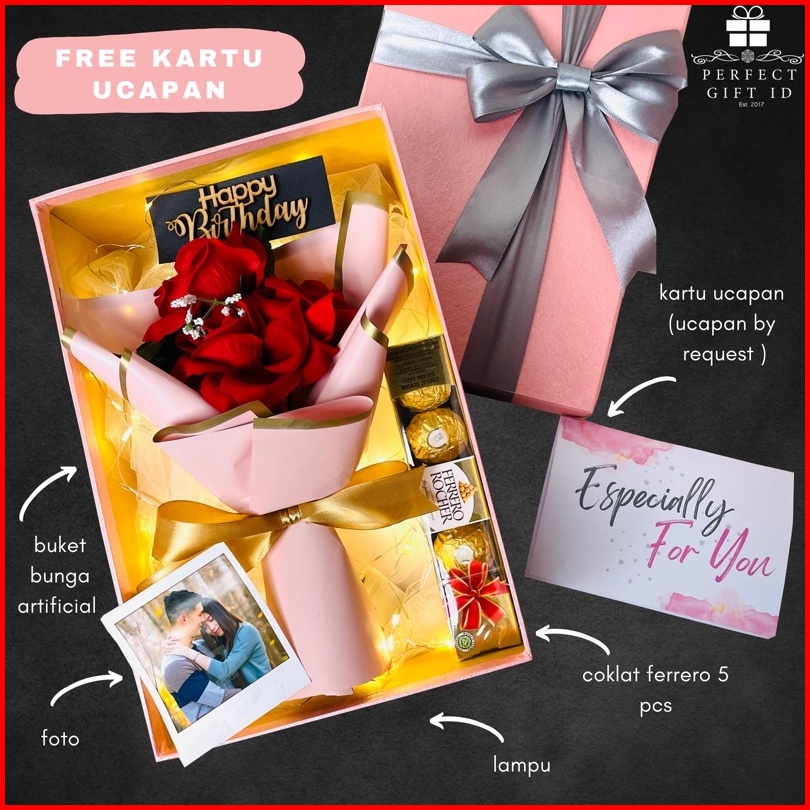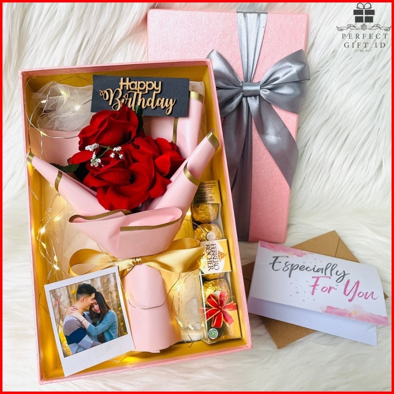 Buket Bunga Kado Ulang Tahun Kado Anniversary Romantis Bunga Box Lampu Hadiah Ultah Anniversary