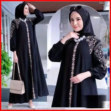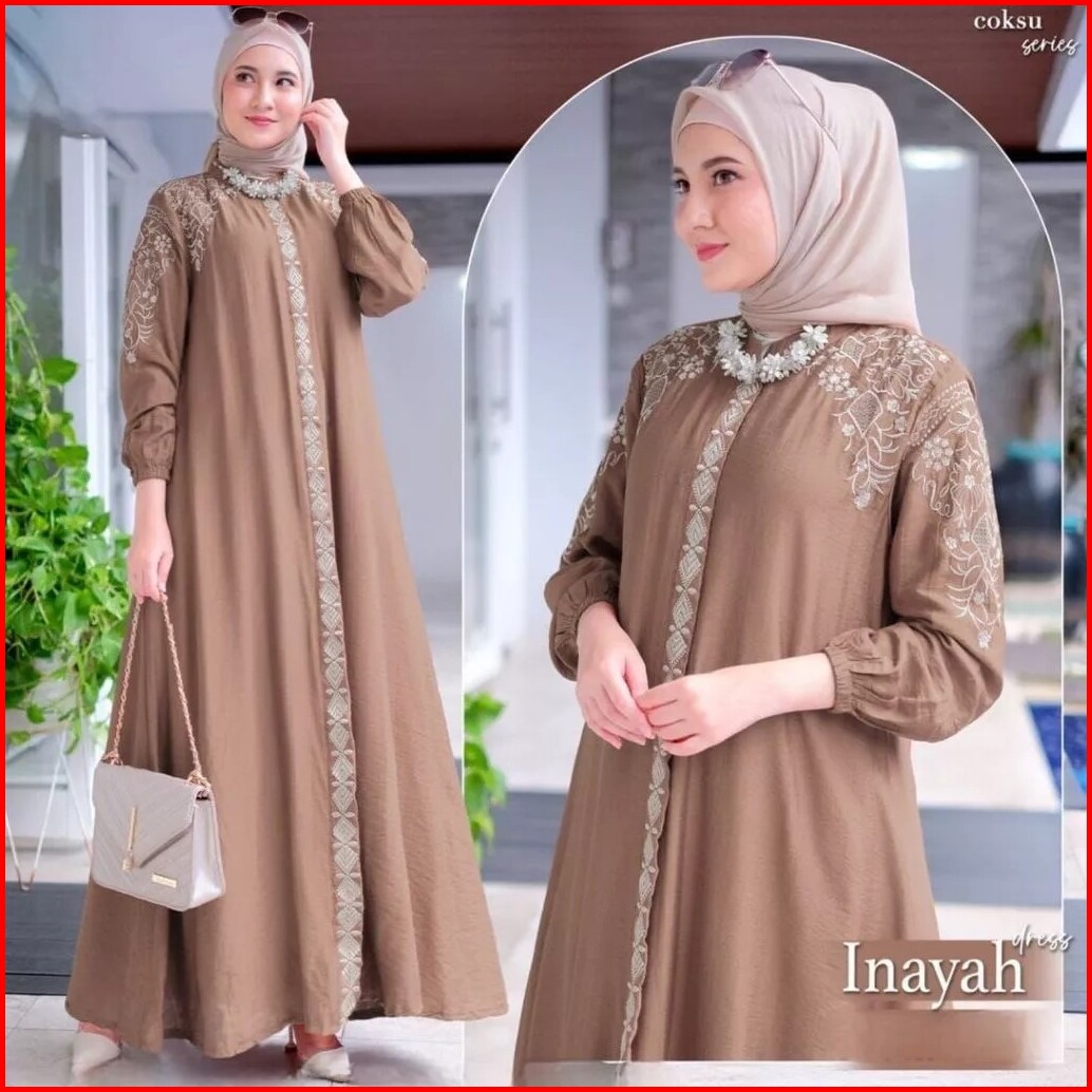 Dress Inayah Material Polo Mix Bordir Zipper Dress Wanita Muslimah Gamis Wanita Terkini