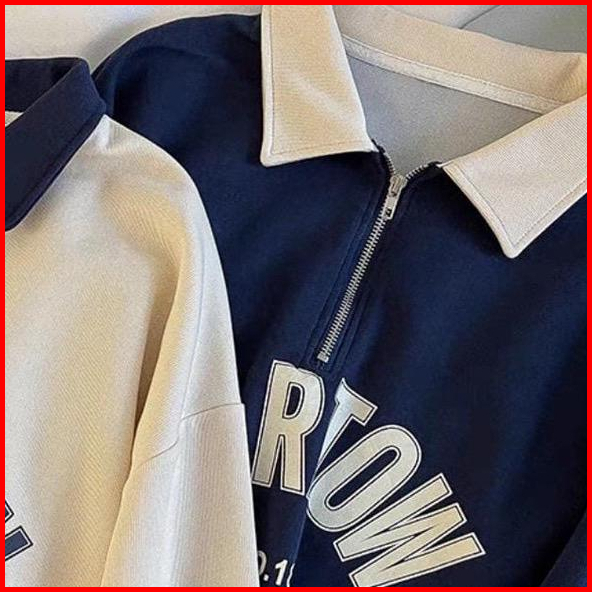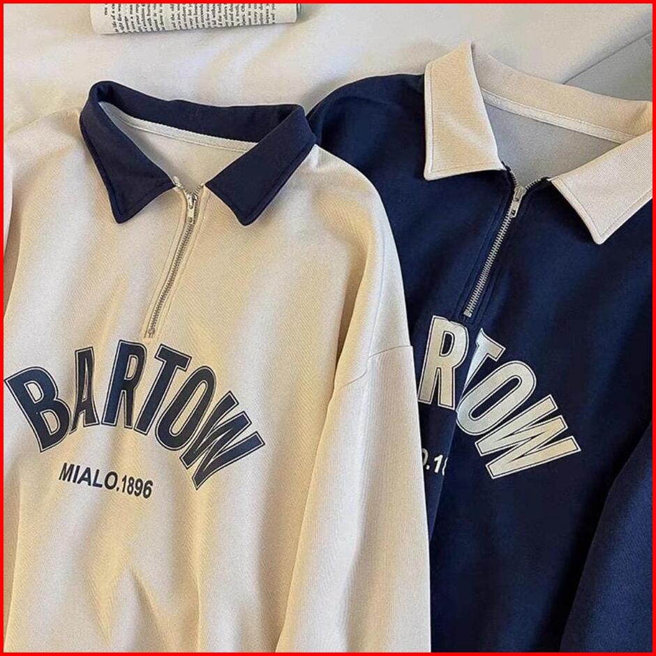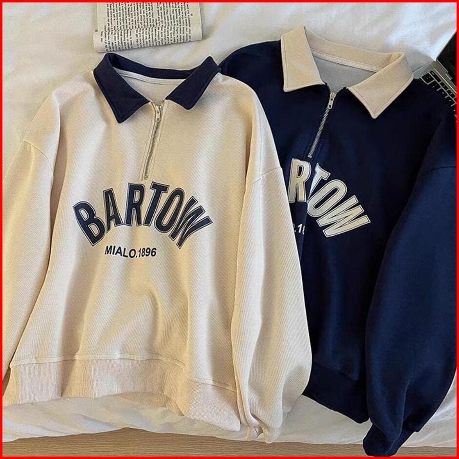 Sweater Halfzip Uniseks Oversize - Sweatshirt Bartow Collar - Vintage Korean Style