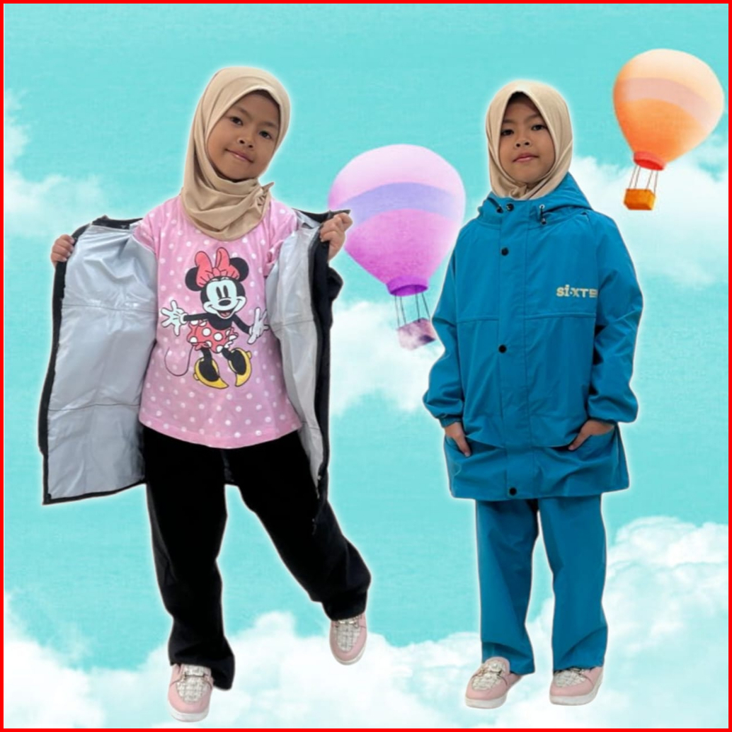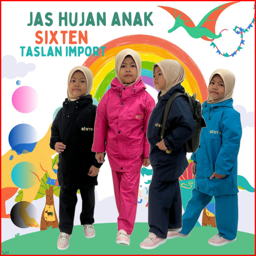 Jas Hujan Anak Stelan Sixten Jaket Celana Bahan Taslan Import