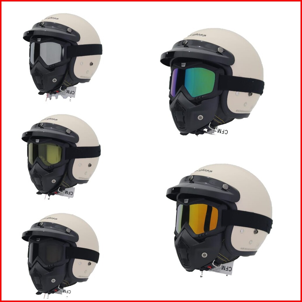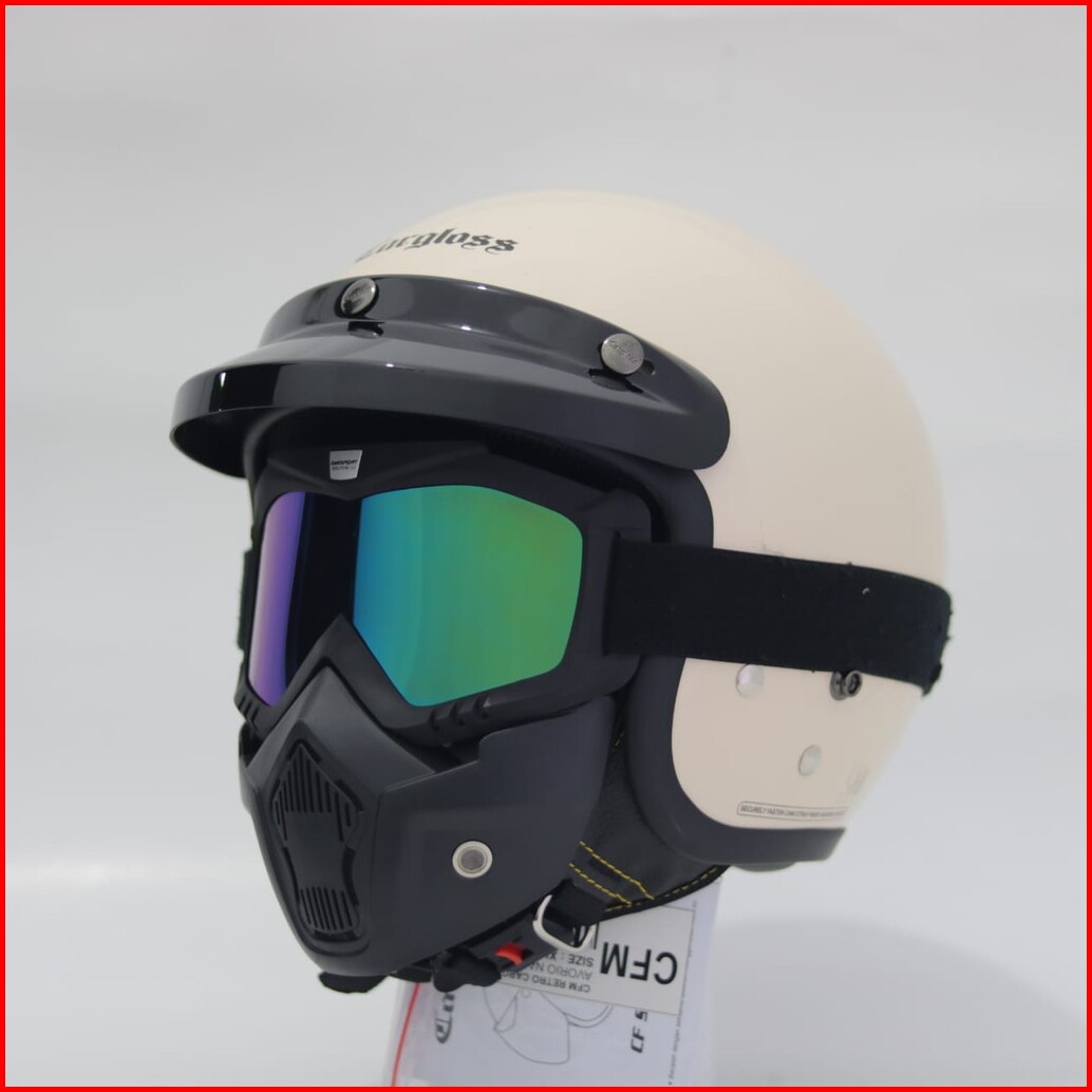 Helm Cargloss Retro Cream Avorio Naide Paket Goggle Mask