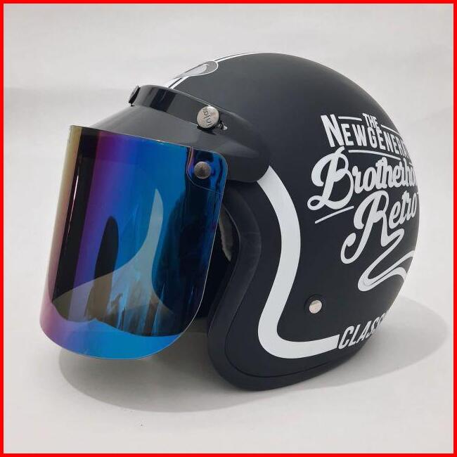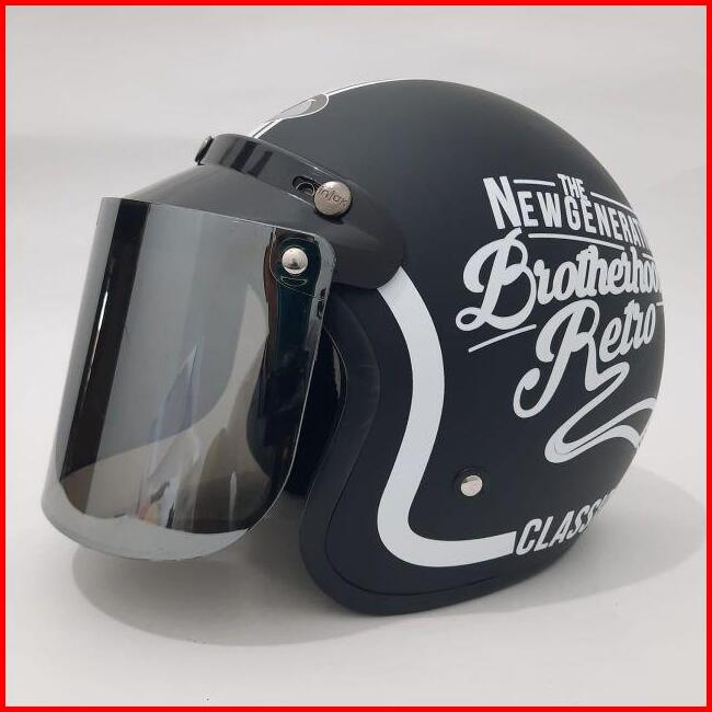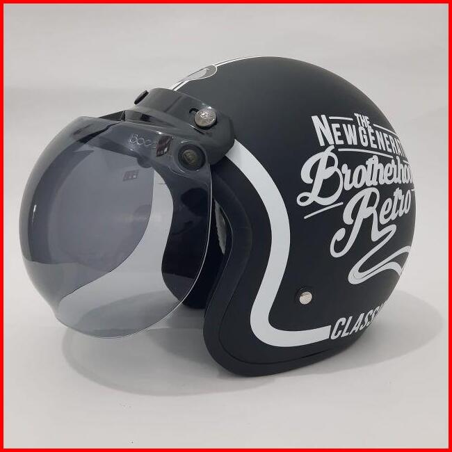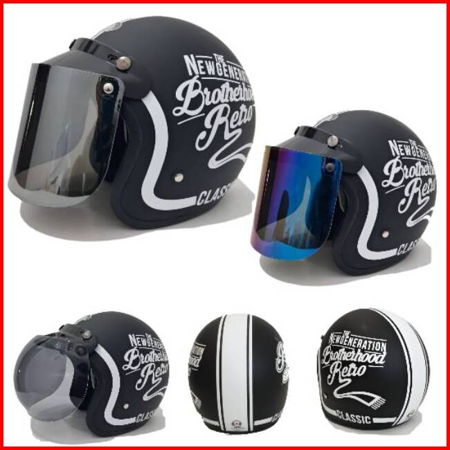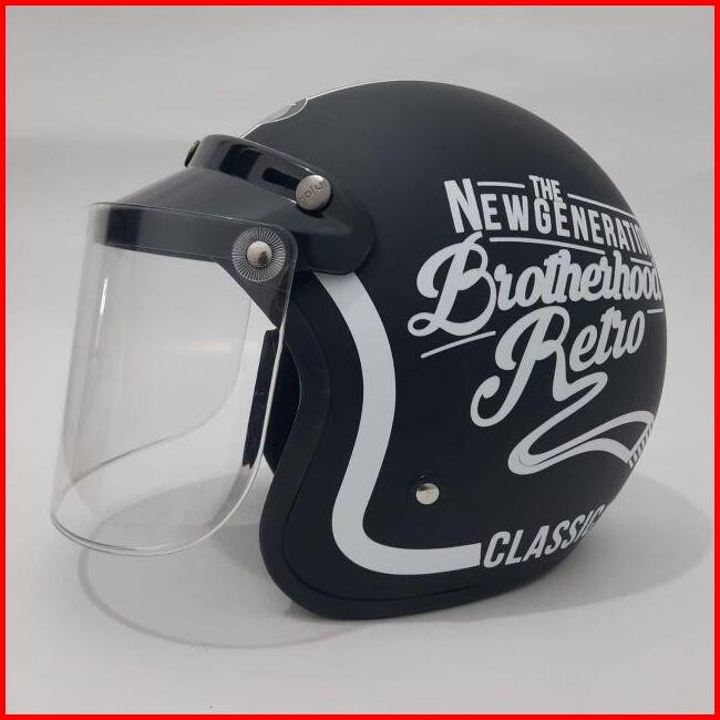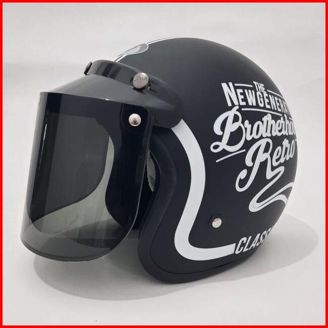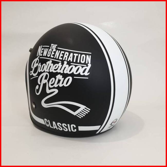 Helm Bogo Jpn Brotherhood Retro Clasiss Hitam Putih Doff