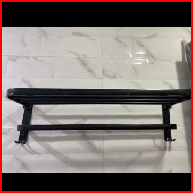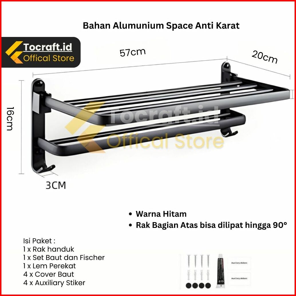 Tcid Gantungan Handuk Rak Kamar Mandi Lipat Stainless Anti Karat Hitam