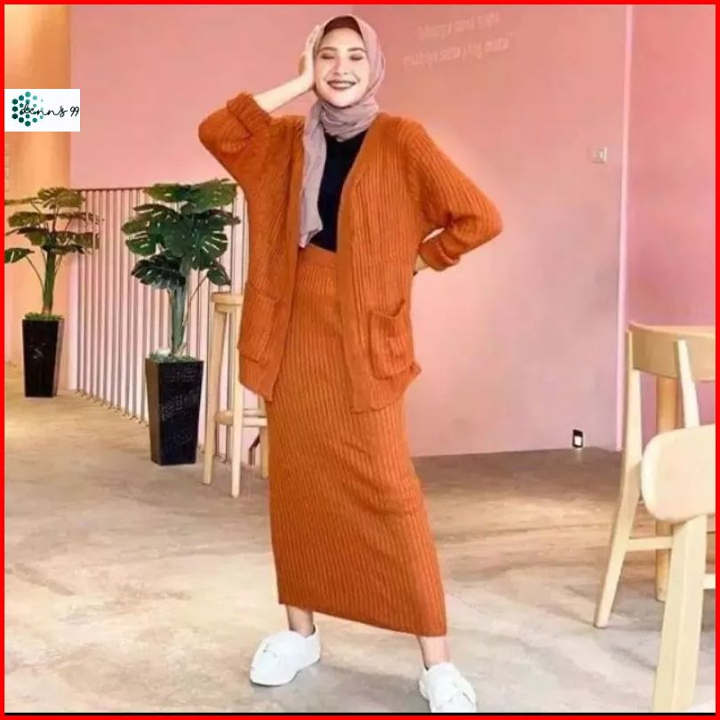 Stelan Rajut Cardy Stelan Cardigan One Set Wanita