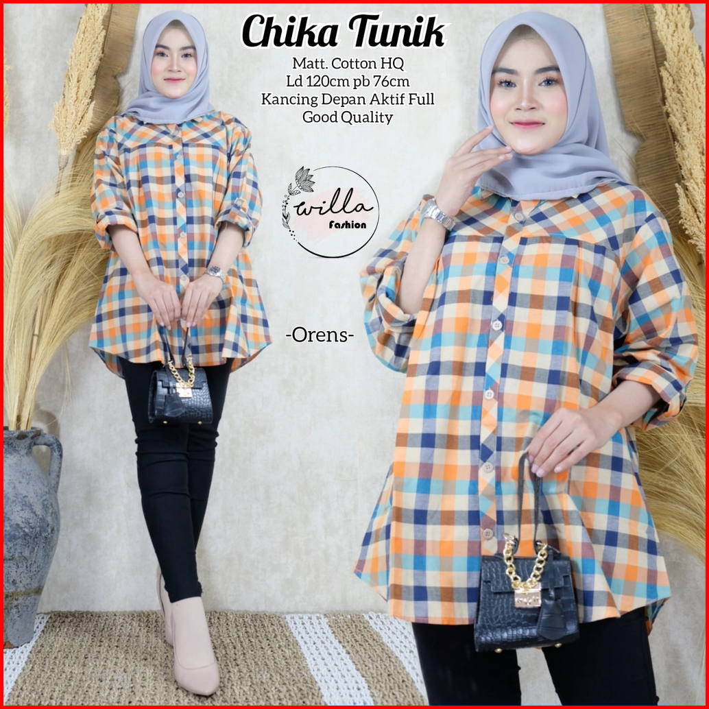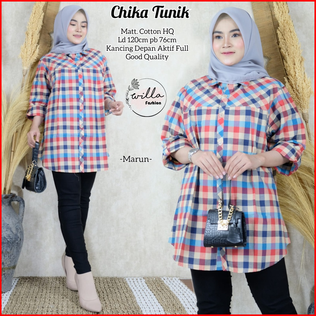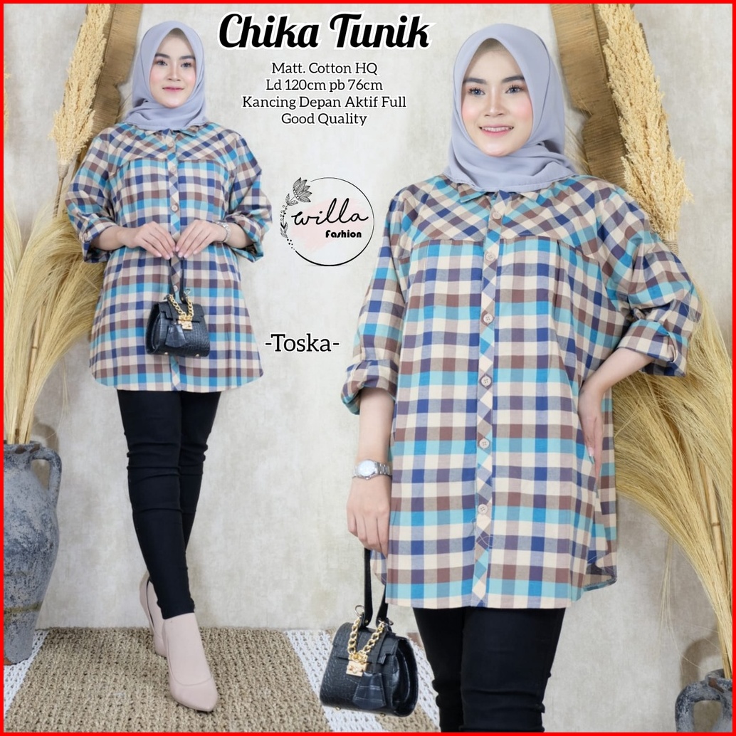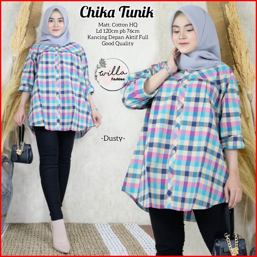 Tunik Wanita Motif Kotak Chika Tunik Bahan Katun Ukuran Jumbo Ld 120 Cm Pb 76 Cm