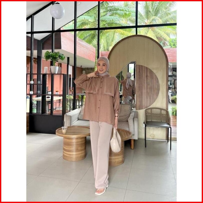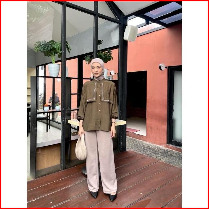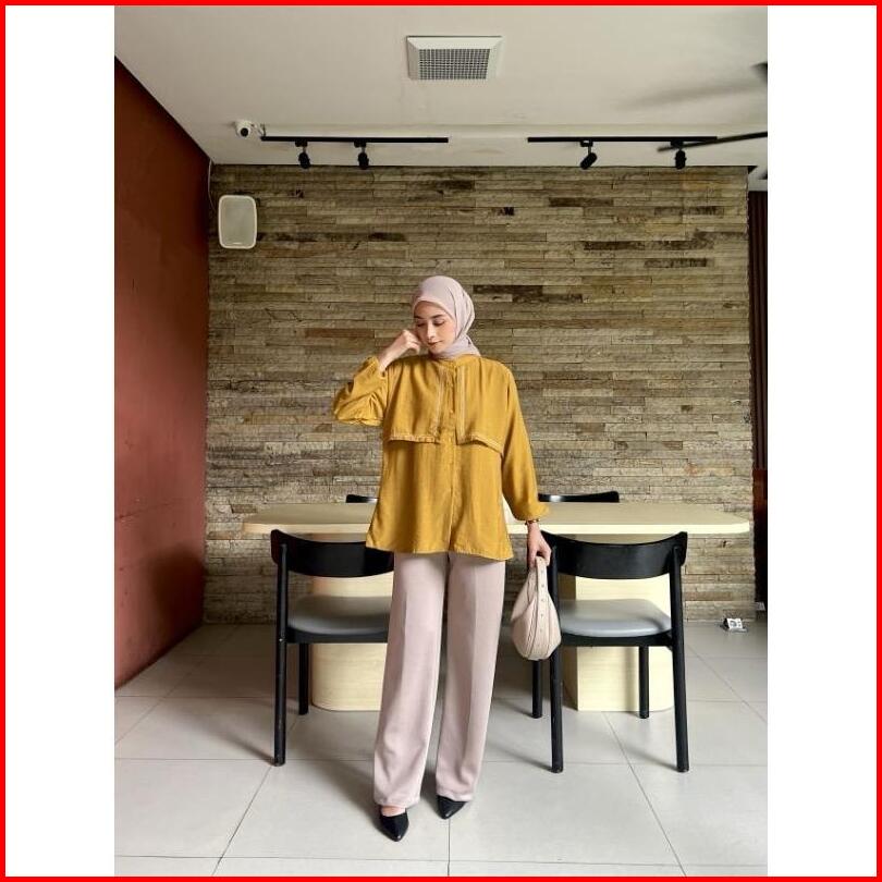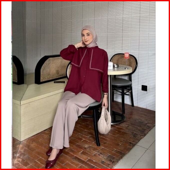 Kemeja Zahra Wanita Lengan Panjang Variasi Layer Depan