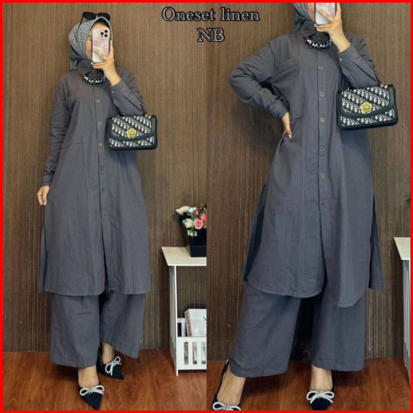Baju Setelan Wanita Dewasa Bahan Polo Linen Setelan Long Tunik Terbaru Ld 110