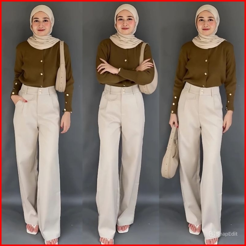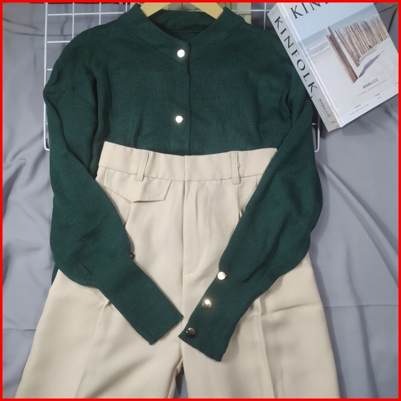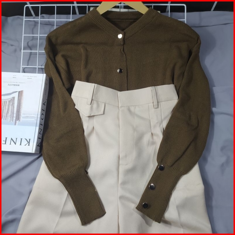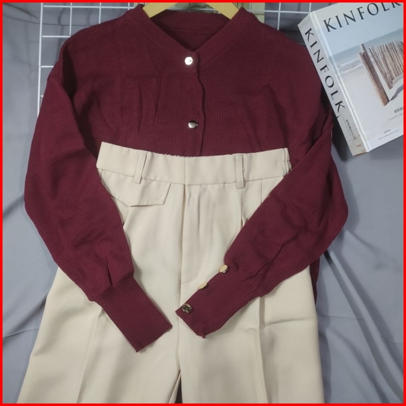 One Set Wanita Cardigan Rajut Oro Pants Haighwaist Setelan Wanita Setelan Wanita Kekinian Ootd Wanita Set Baju One Set W