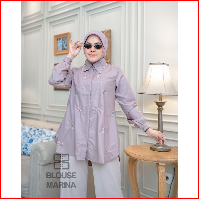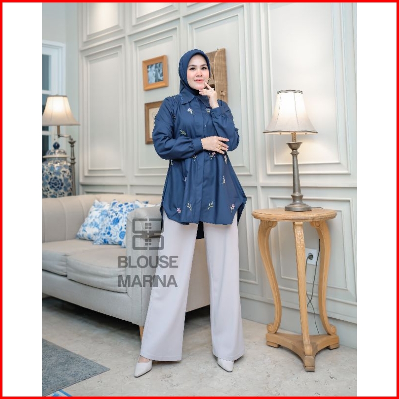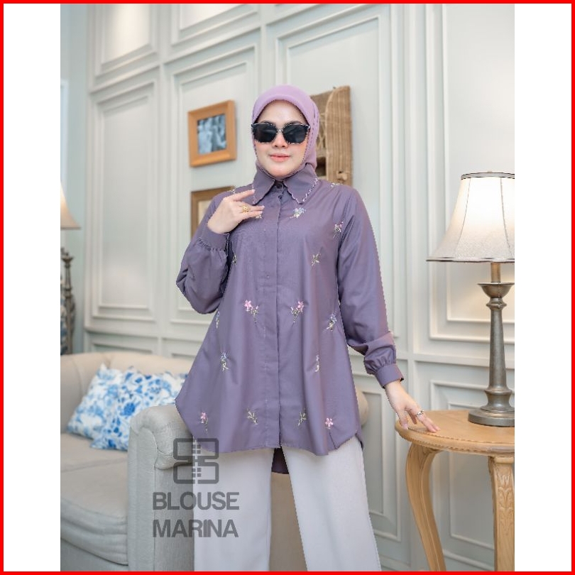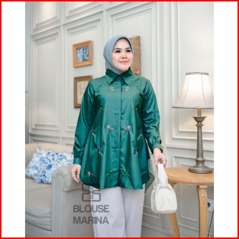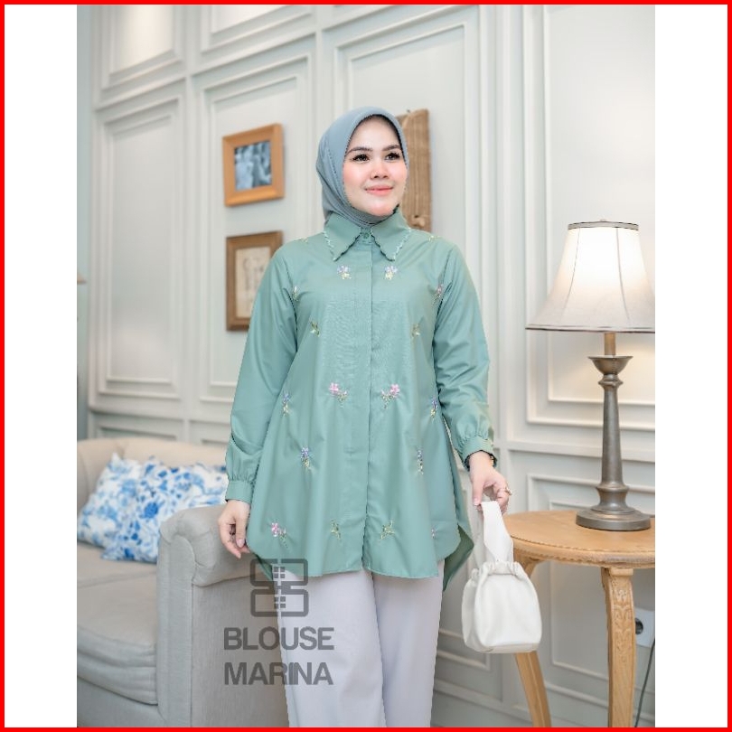 Atasan Blouse Marina Terbaru Premium Atasan Kameja Wanita Bordir Kancing Aktiv