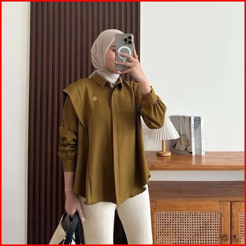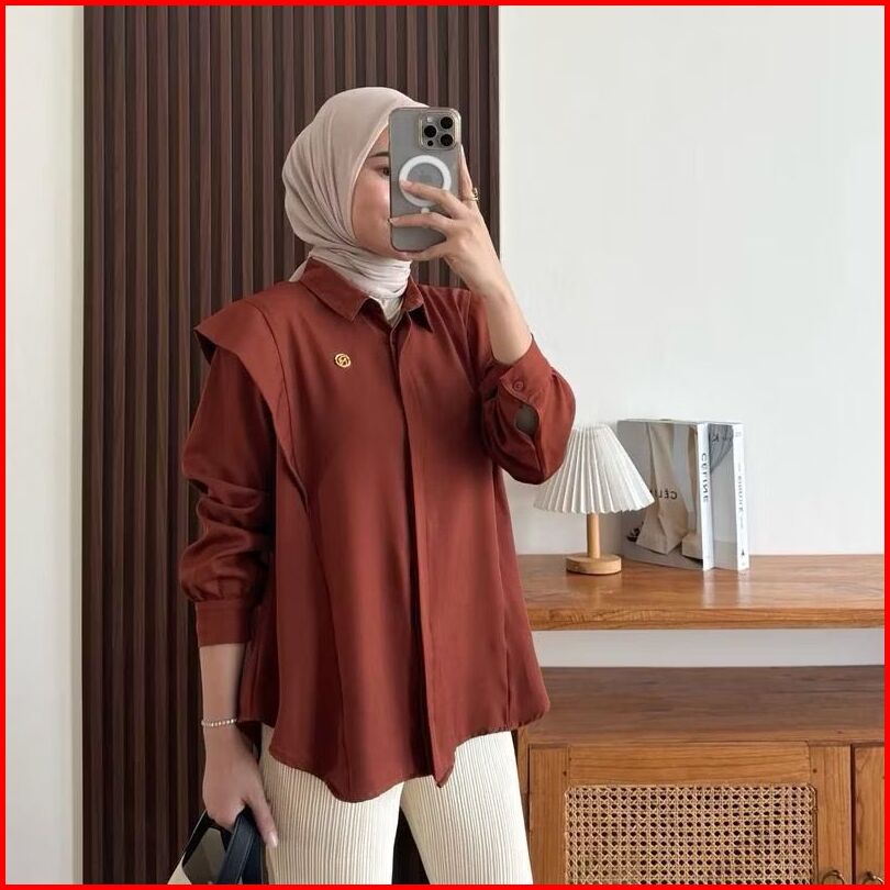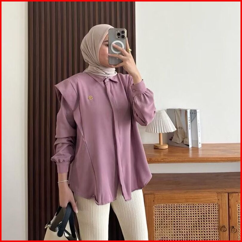 Andini Blouse Polos Shakilla Premium Free Bross - Kemeja Wanita Kekinian