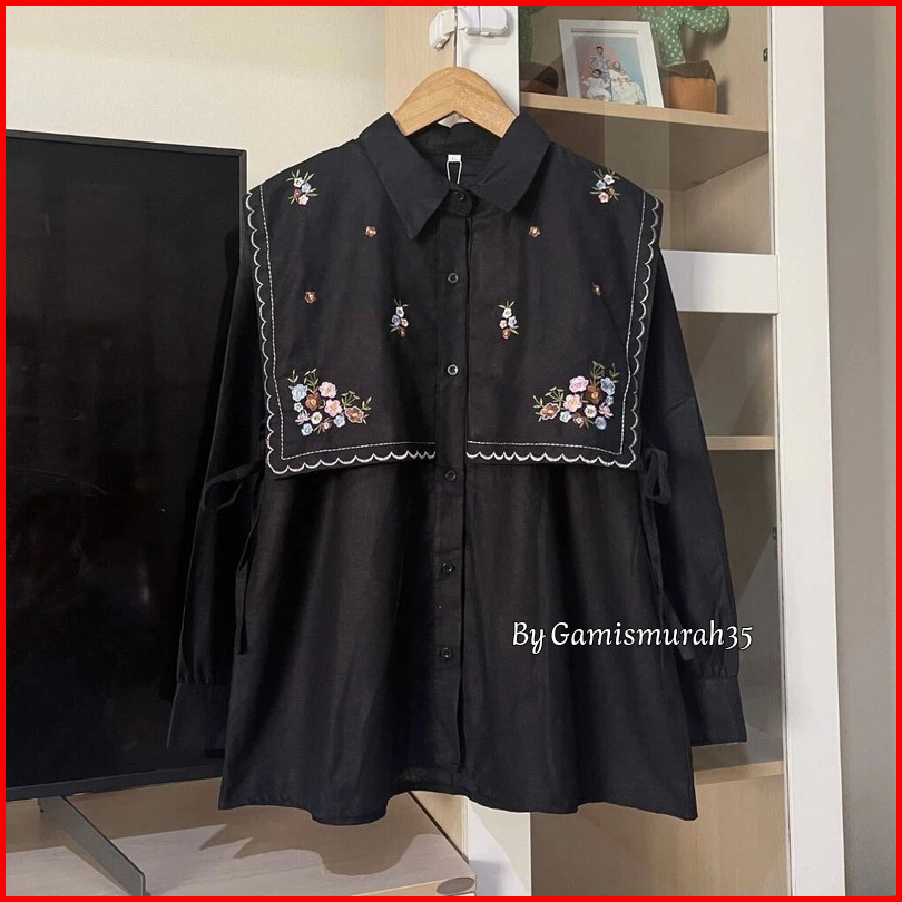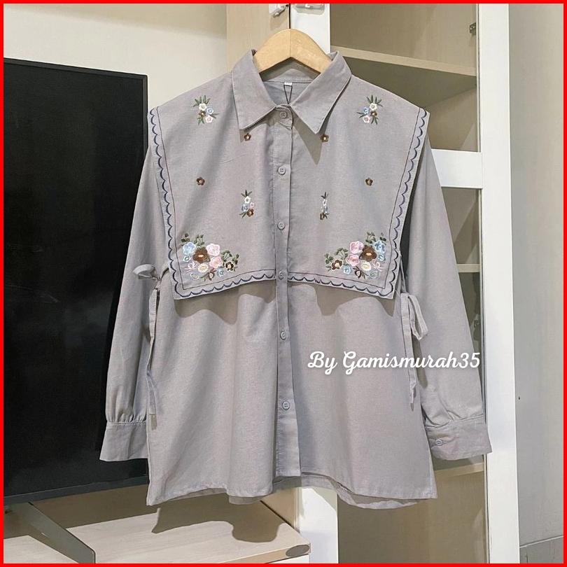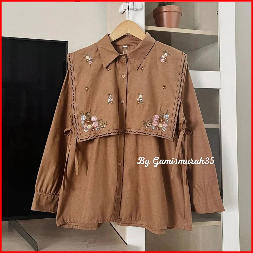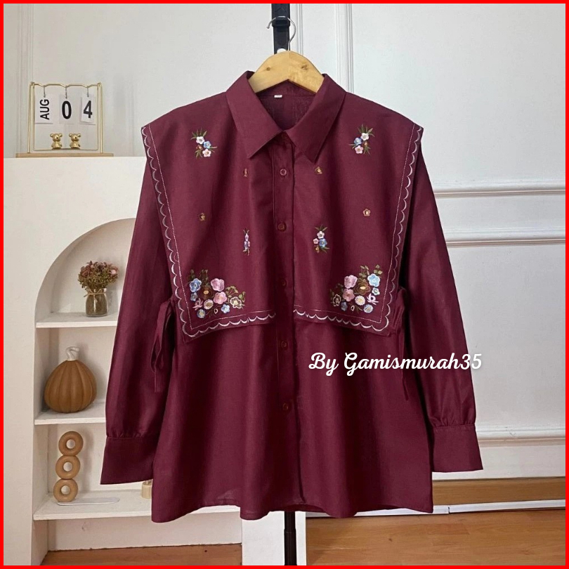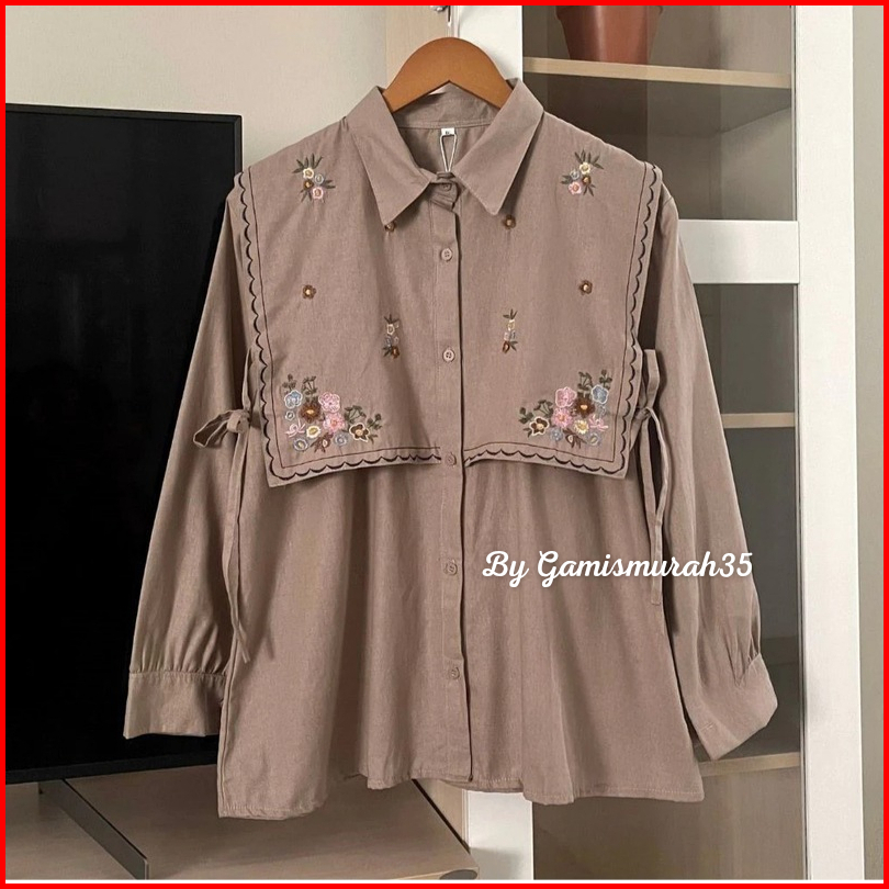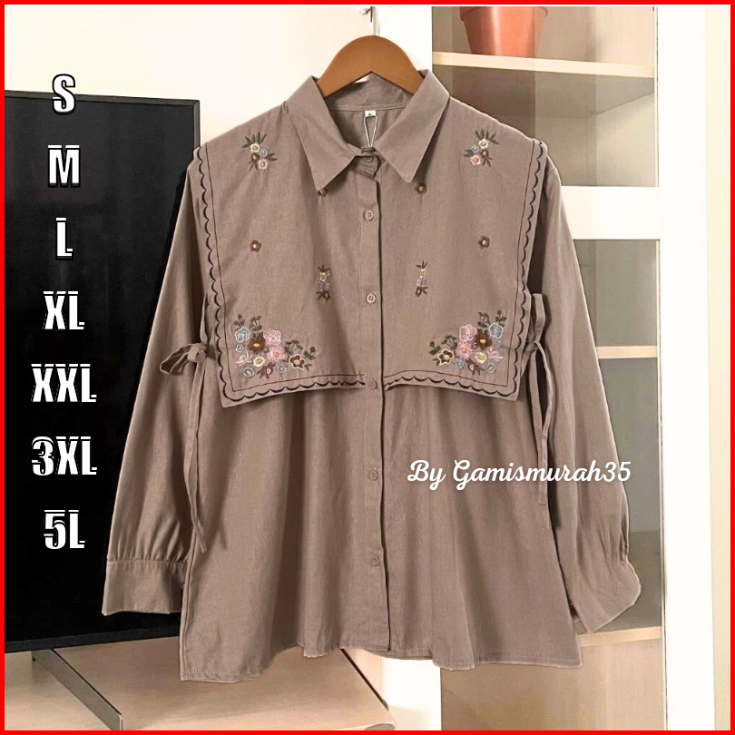 Narika Shirt - Ukuran S M L Xl Xxl Xxxl 5l - Kemeja Jumbo - Atasan Wanita Jumbo Kekinian Bahan Linen Ld 140 130 120 110