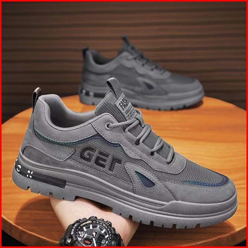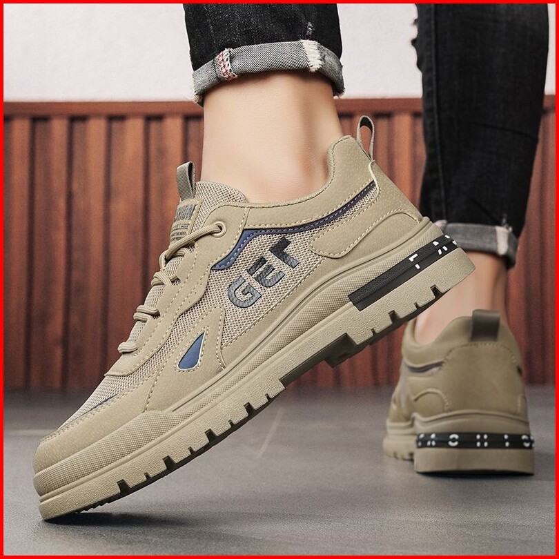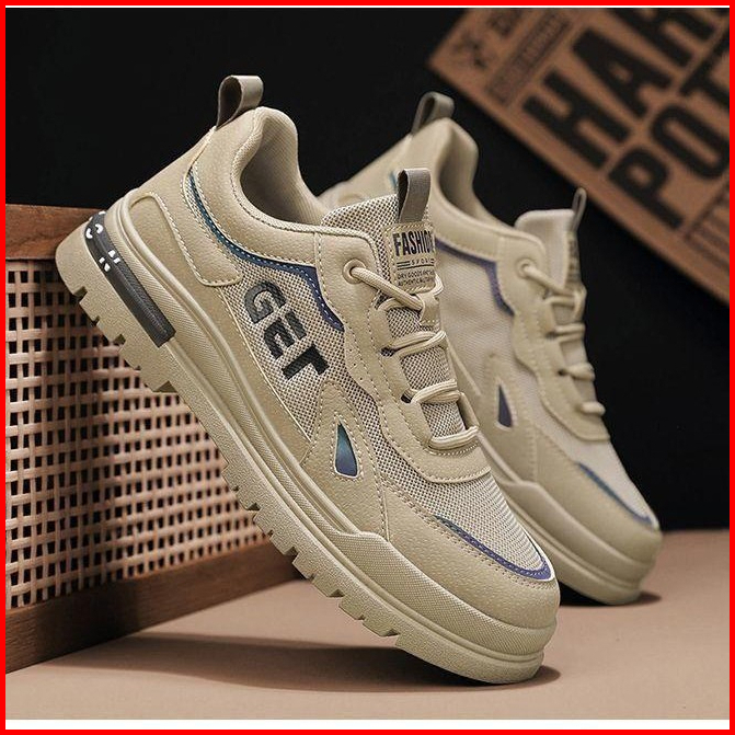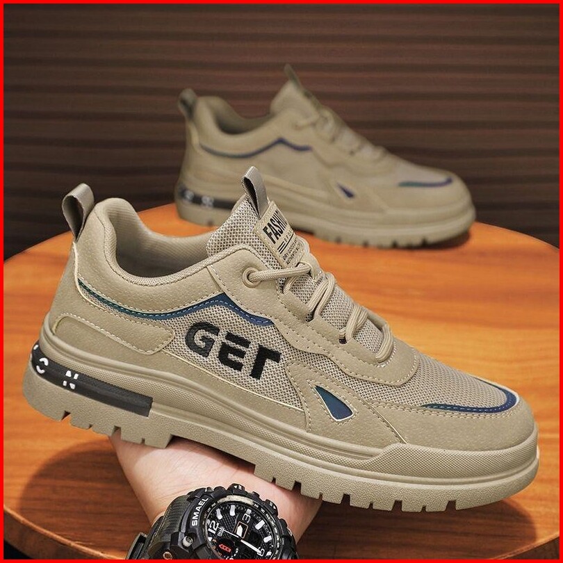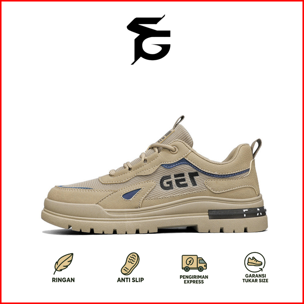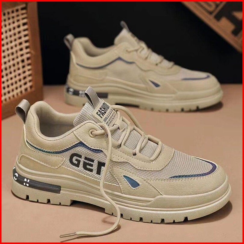 Fashgenics Sepatu Kulit Kasual Pria Laki Laki Cowok Shoes Sneakers Yoshikawa Krem Abu Abu Terbaru