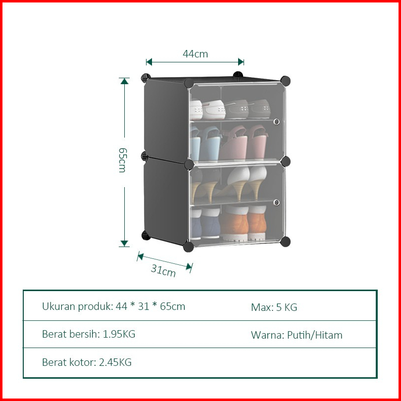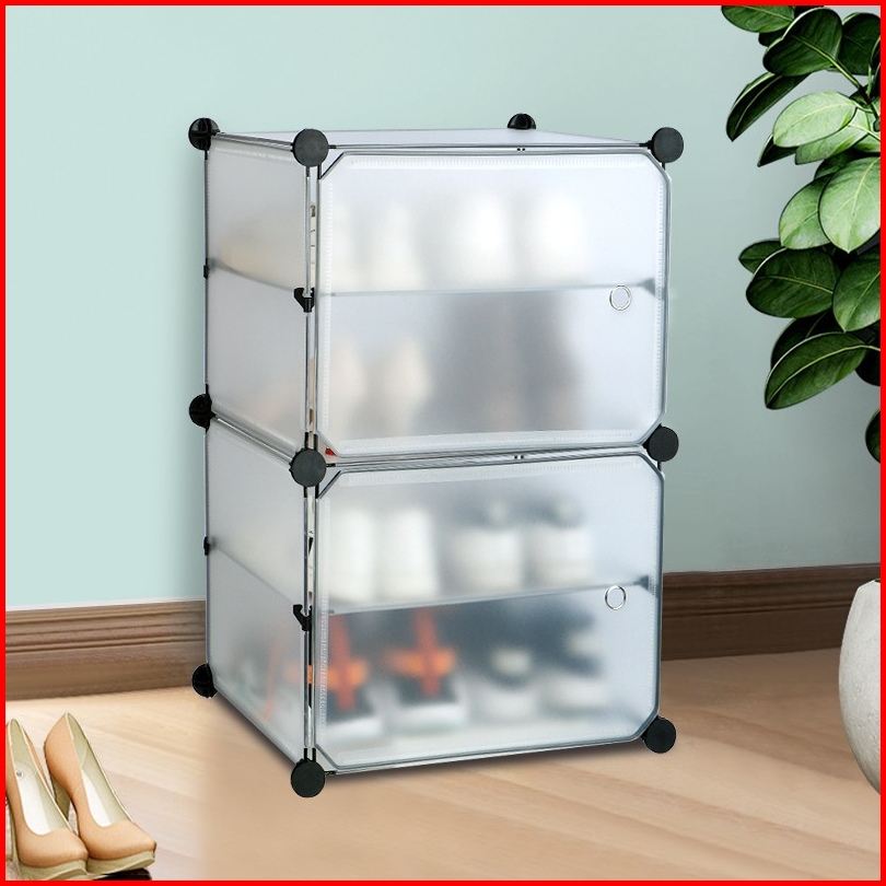 Rak Sepatu Portable 2 X 4 Tertutup Anti Debu Lemari Sepatu 2 X 4 Dengan Cover Anti Debu