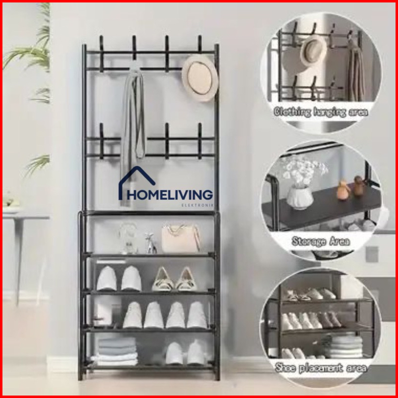 Homeliving Rak Sepatu Gantungan Topi Tas Multifungsi Stand Hanger Baju Serbaguna Termurah