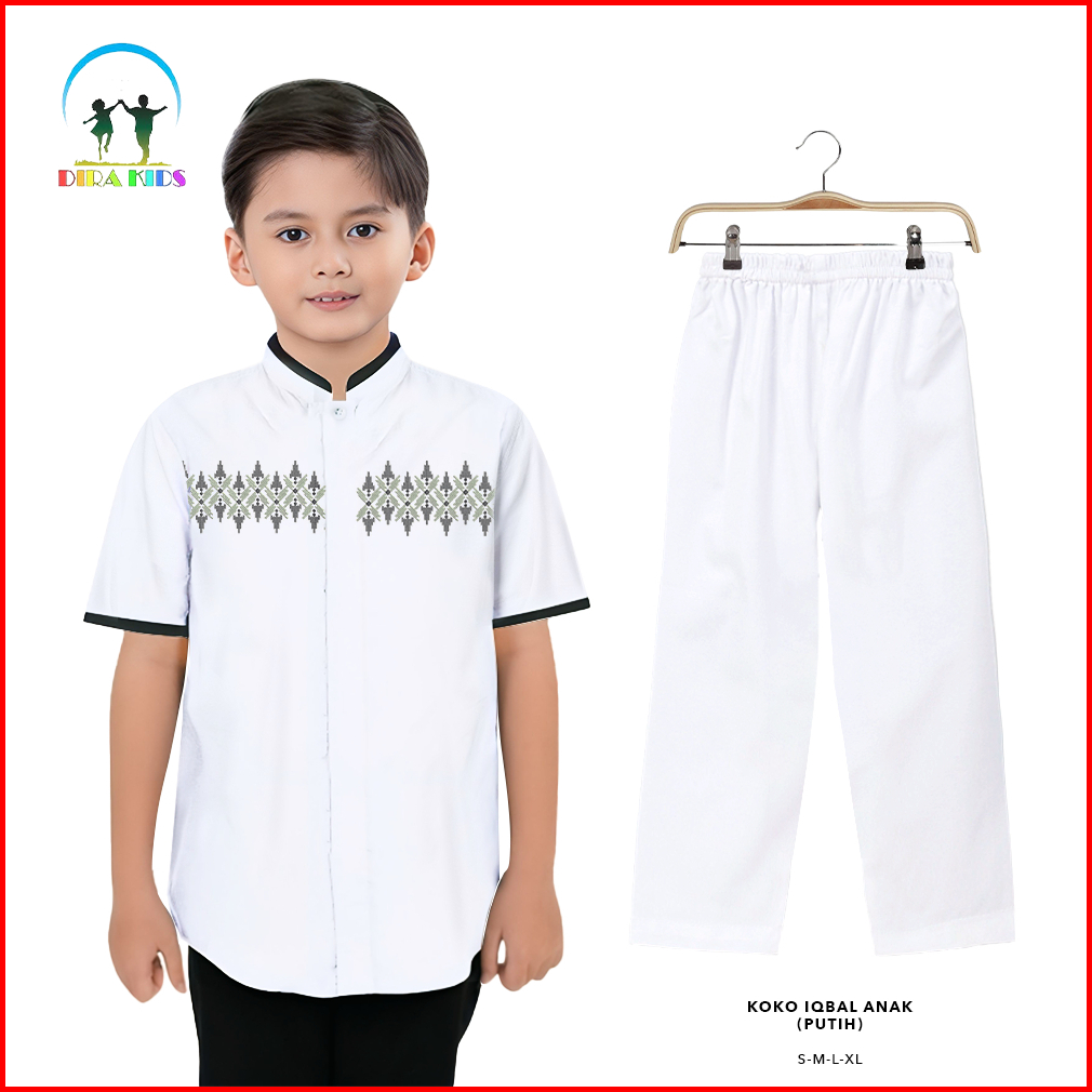 Dirakids Baju Setelan Koko Anak Muslim Laki-laki Kombinasi Bordir Batik Premium Lengan Pendek Bahan Toyobo Adem Terbaru